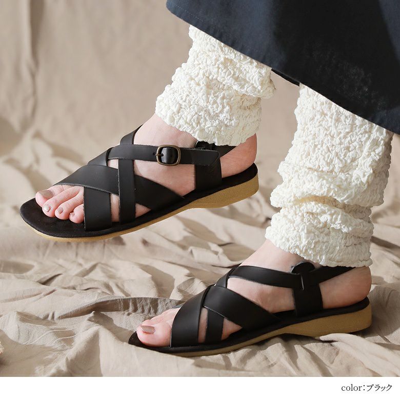 他の画像を見る 【50%OFF】堀出し物いっぱい★感謝価格item!!歩きやすい軽量ストラップサンダル♪ 『n'OrLABEL異素材配色クロスベルトサンダル』※返品交換不可※【メール便不可】 定価 ¥ 4,500 のところ ¥ 2,249 税込 3.50 (10)