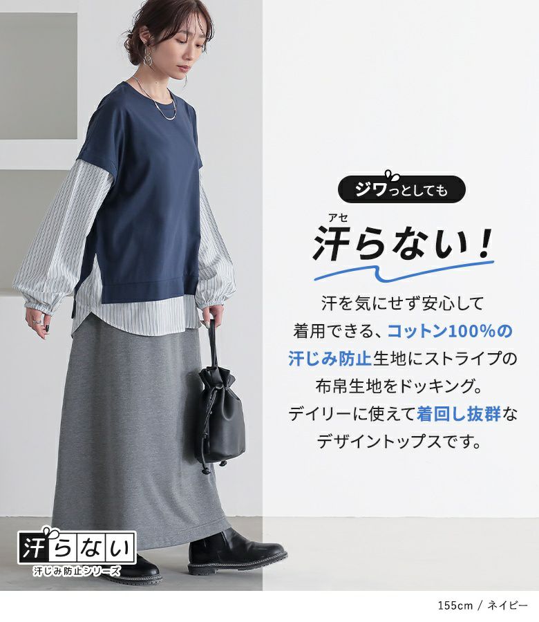 他の画像を見る 選べる2サイズ展開!汗じみ防止機能付き♪カットソー×シアー生地のレイヤードブラウス。 『n'OrLABELインナードッキングシアーブラウス』※メール便可※【10】 ¥ 3,960 税込 (0)
