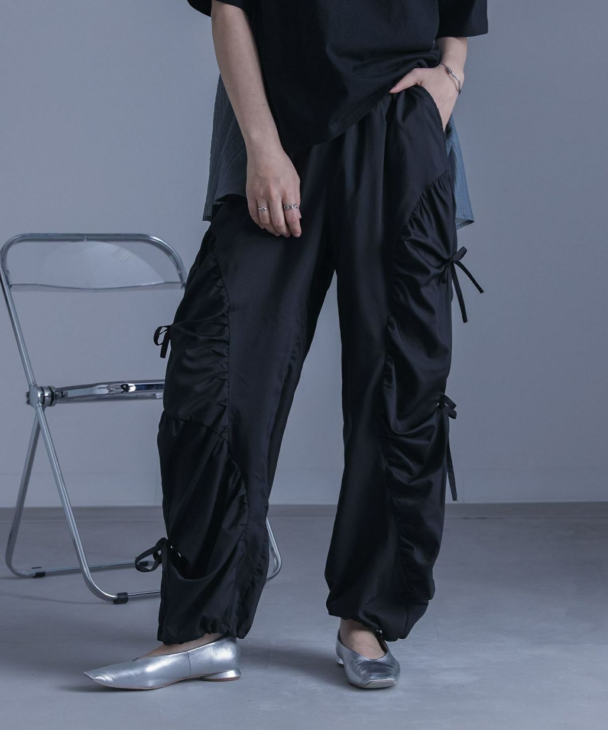 他の画像を見る 選べる2サイズ展開!左右非対称に切り替えたギャザーとリボンデザインがポイントになったパンツ。 『kOhAKUギャザー切替裾ドロストパンツ』※メール便可※【10】 ¥ 6,980 税込 (0)