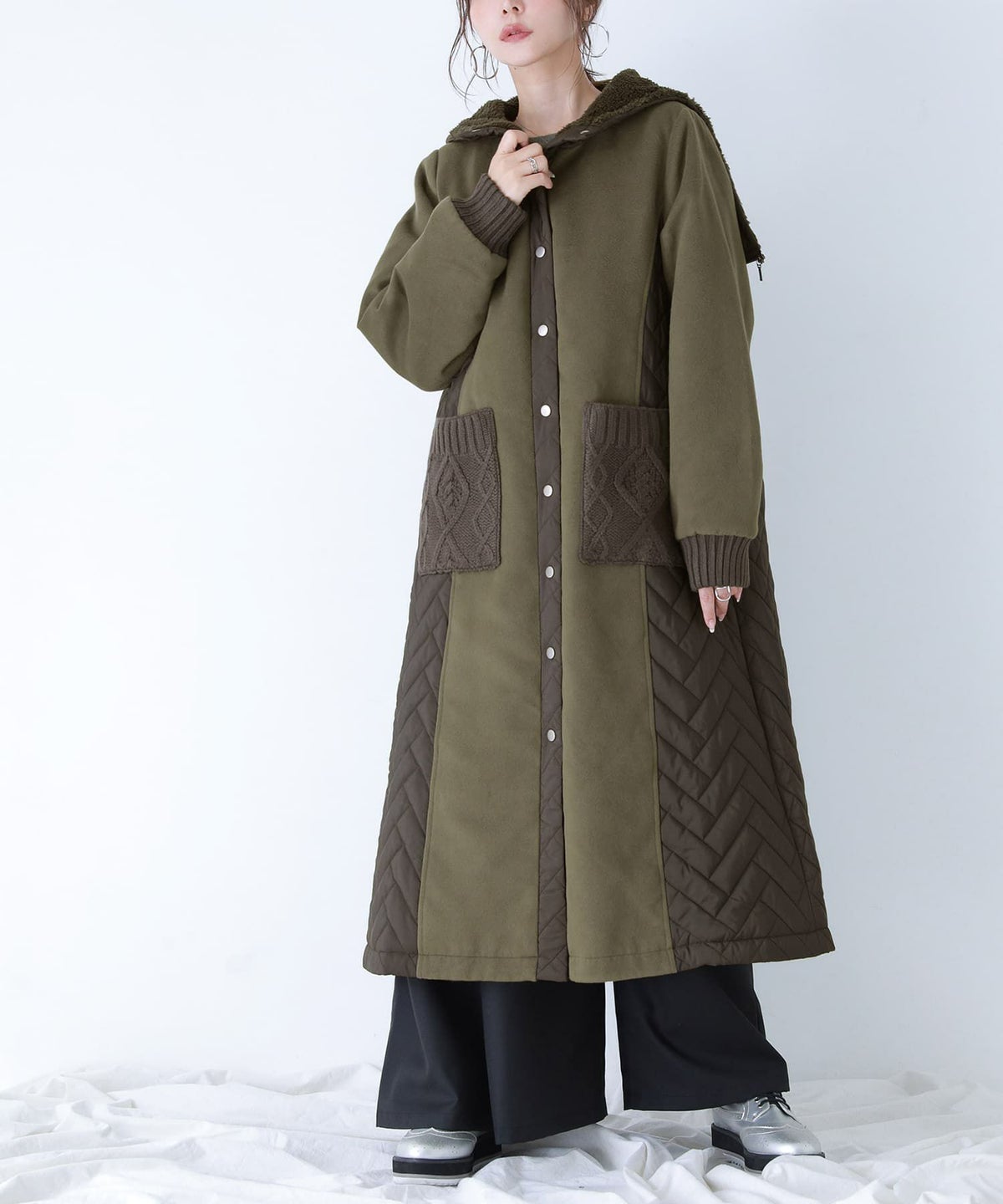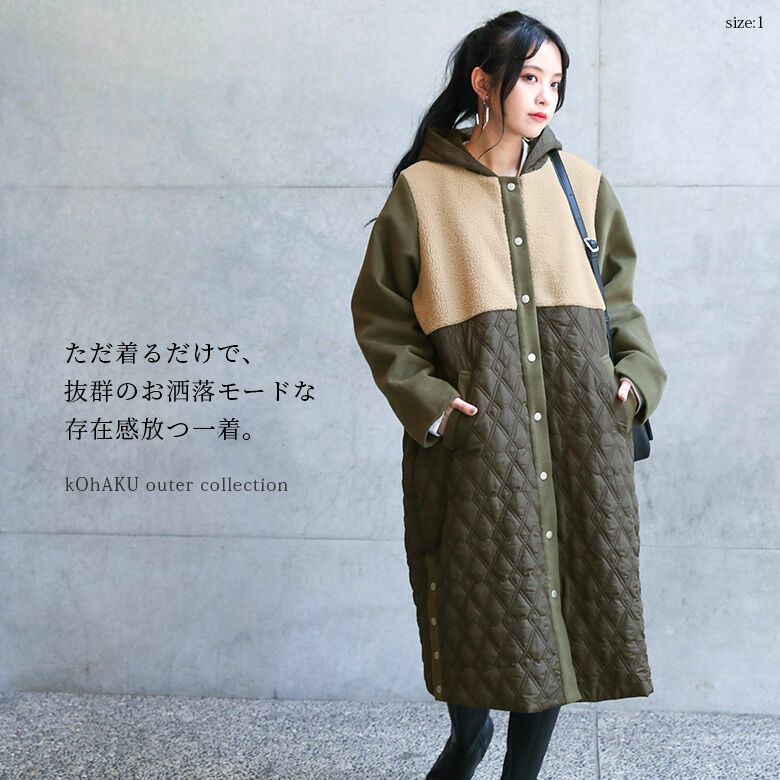 他の画像を見る 選べるM~3Lサイズ展開!特別な存在感を放つモードなキルトコート。 【送料無料】『kOhAKU異素材キルティングフード2WAYコート』【メール便不可】【80】 ¥ 13,990 税込 4.25 (4)