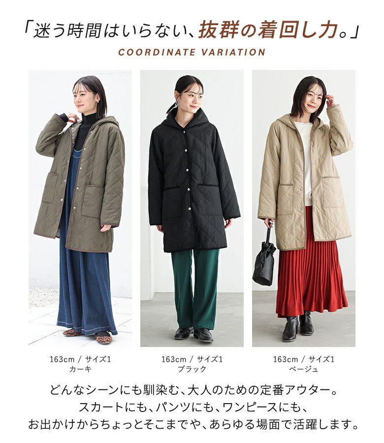 他の画像を見る 選べる2サイズ展開!薄手の中綿素材で着ぶくれしにくい、大人印象のキルティングコート。 『n'OrLABELフード付きキルティングコート』【メール便不可】【50】 ¥ 5,980 税込 5.00 (3)