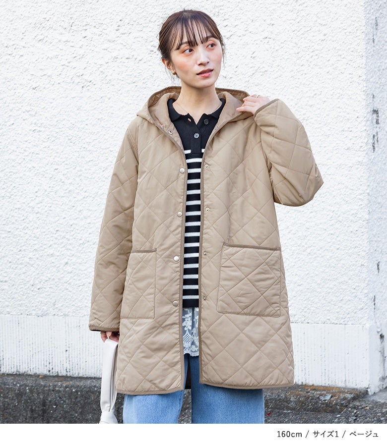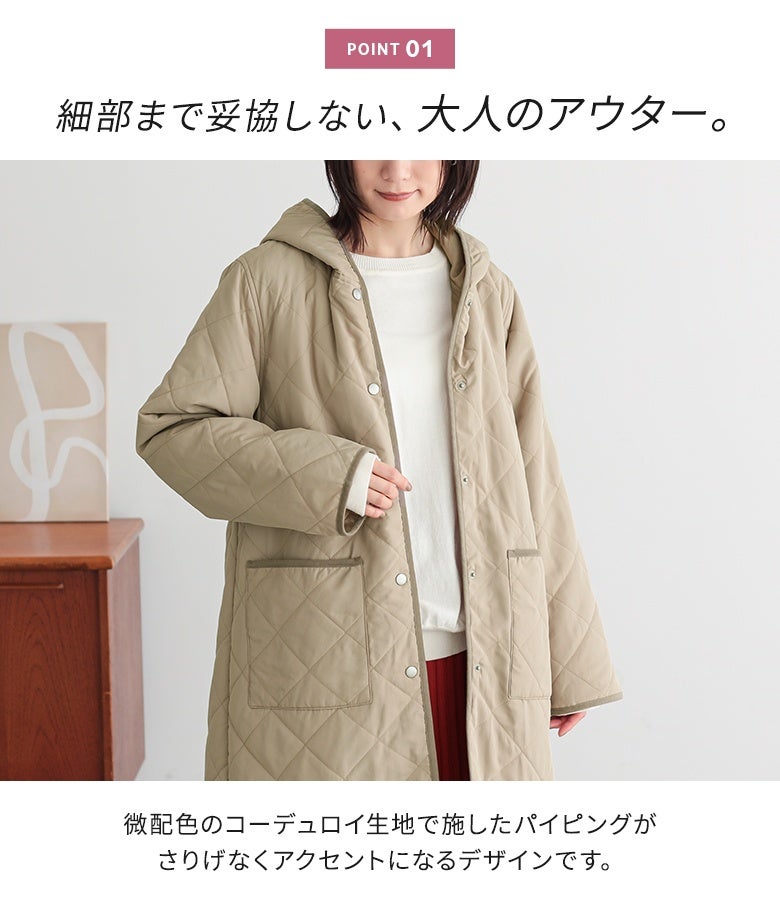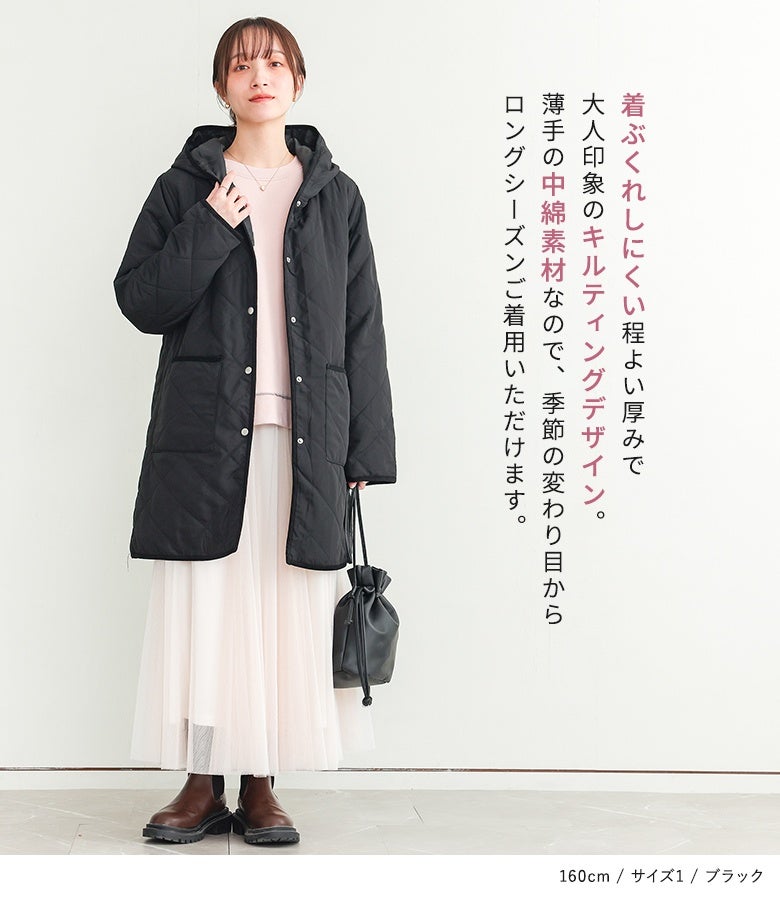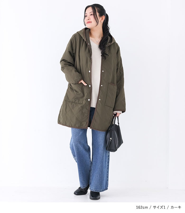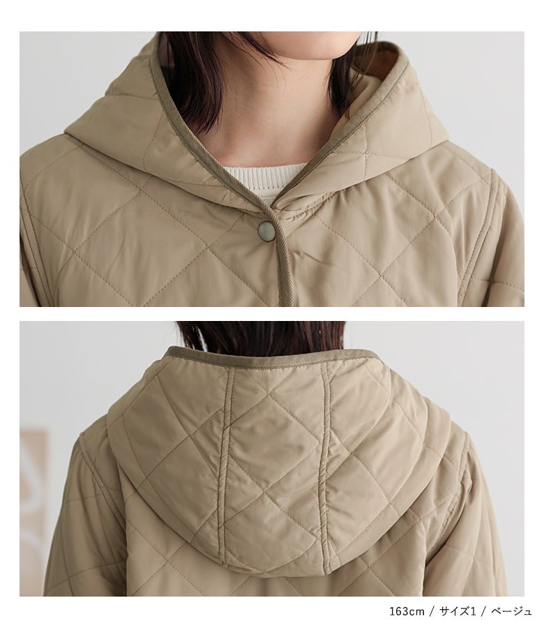 他の画像を見る 選べる2サイズ展開!薄手の中綿素材で着ぶくれしにくい、大人印象のキルティングコート。 『n'OrLABELフード付きキルティングコート』【メール便不可】【50】 ¥ 5,980 税込 5.00 (3)