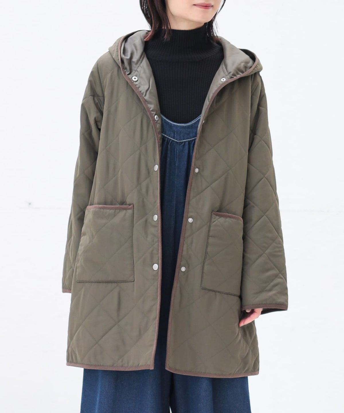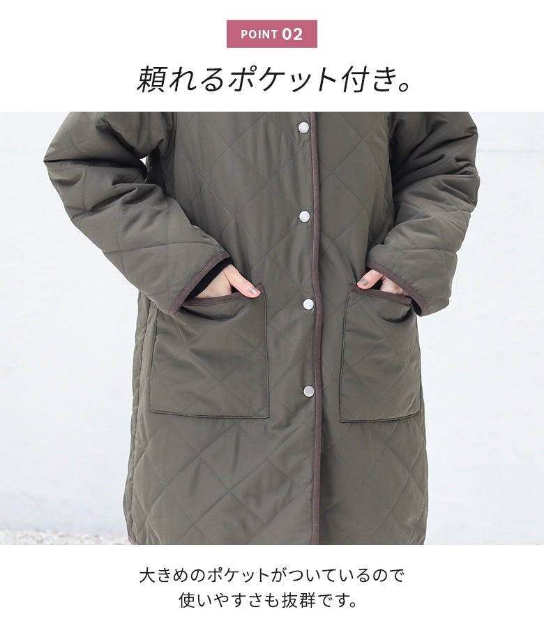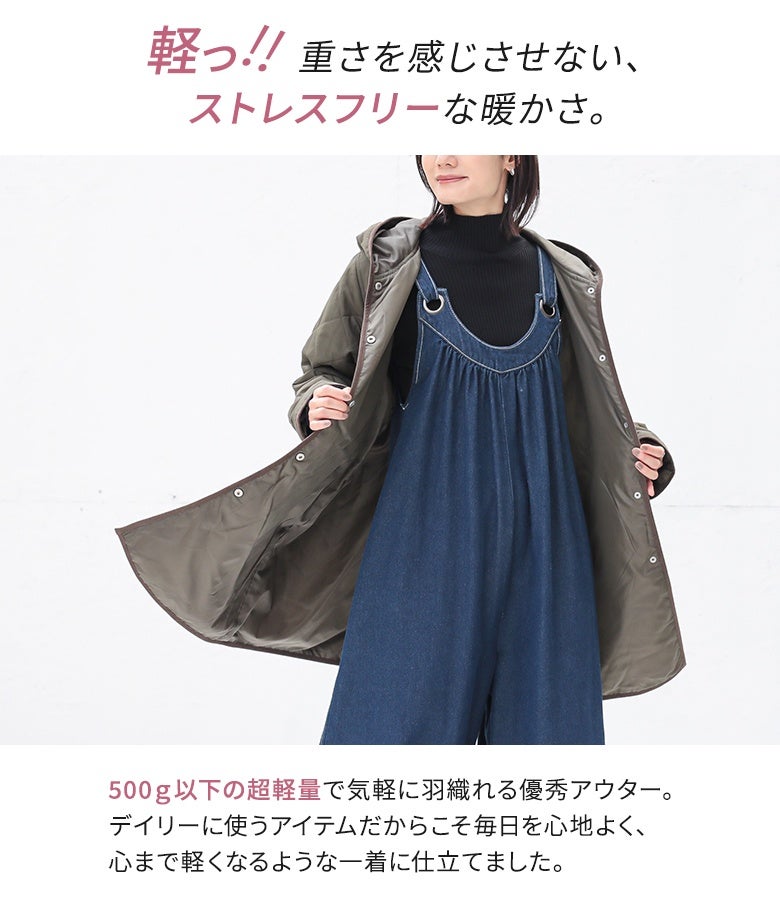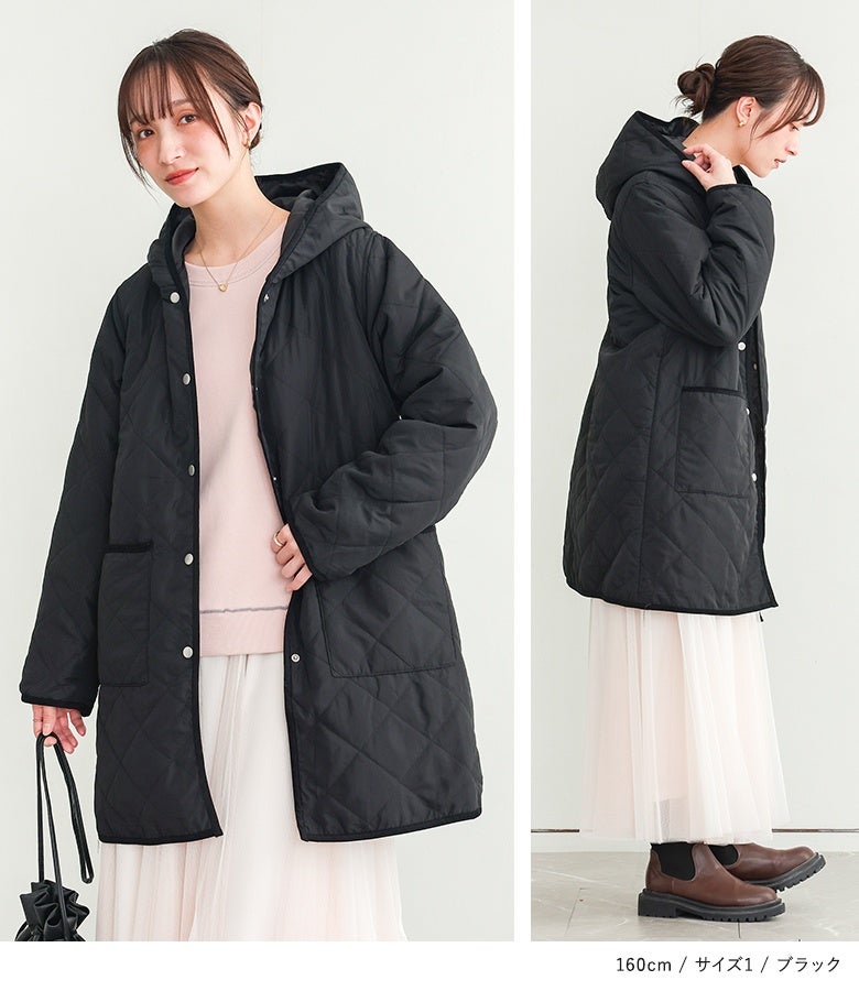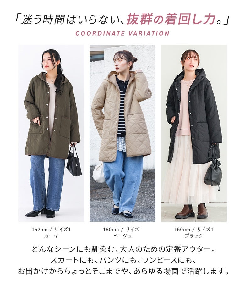 他の画像を見る 選べる2サイズ展開!薄手の中綿素材で着ぶくれしにくい、大人印象のキルティングコート。 『n'OrLABELフード付きキルティングコート』【メール便不可】【50】 ¥ 5,980 税込 5.00 (3)