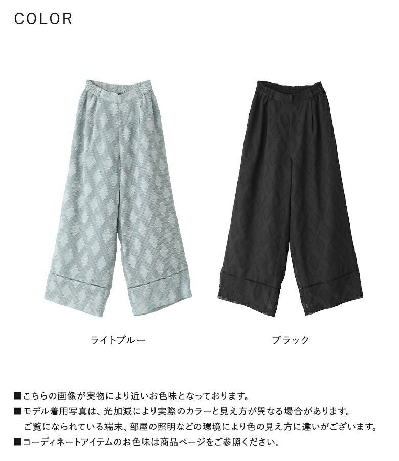 他の画像を見る 選べる2サイズ展開!立体感のあるカットジャカード生地を使用したワイドパンツ。 『somari imaginationカットジャカードパンツ』※メール便可※【10】 ¥ 5,980 税込 (0)