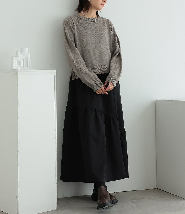 他の画像を見る 選べるM~3Lサイズ展開!1枚着るだけでコーデがキマる、異素材ドッキングワンピース♪ 『n'OrLABELニットドッキングティアードワンピース』【メール便不可】【30】 ¥ 6,980 税込 3.67 (3)
