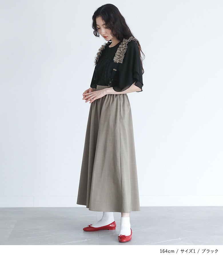 他の画像を見る 選べる2サイズ展開!チュールを重ねたフリルのサスペンダー付きフレアスカート。 『somari imaginationフリルサスペンダー付きフレアスカート』【メール便不可】【20】 ¥ 6,980 税込 (0)