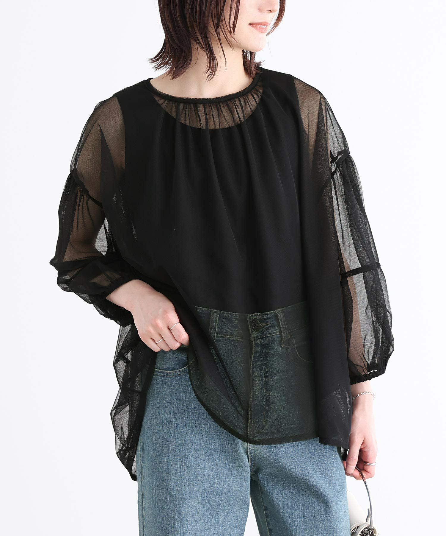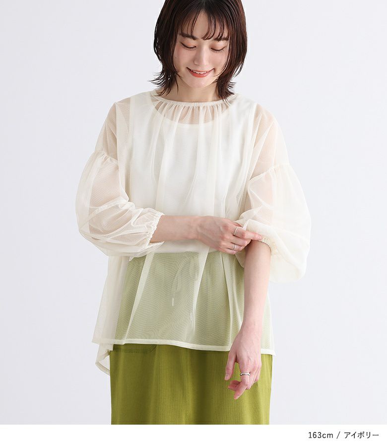 他の画像を見る 【70%OFF】二層仕立てのチュールが、繊細なシアー感を演出するトップス。 『n'OrLABELランタンスリーブチュールトップス』※返品交換不可※※メール便可※【5】 定価 ¥ 4,980 のところ ¥ 1,493 税込 4.00 (1)
