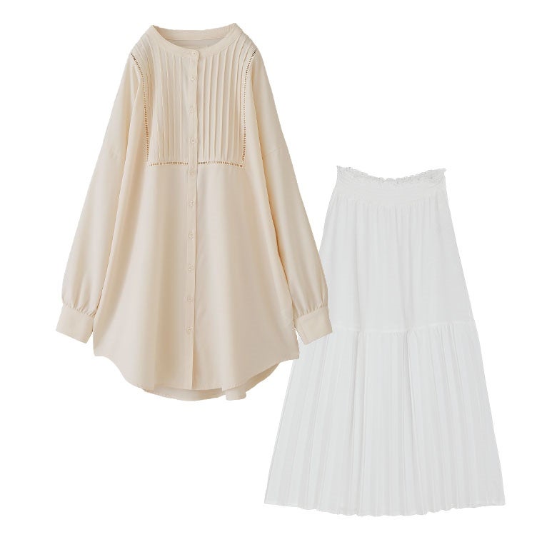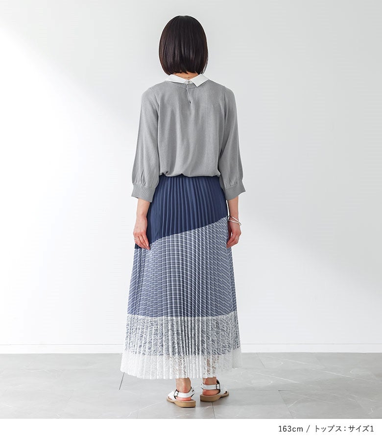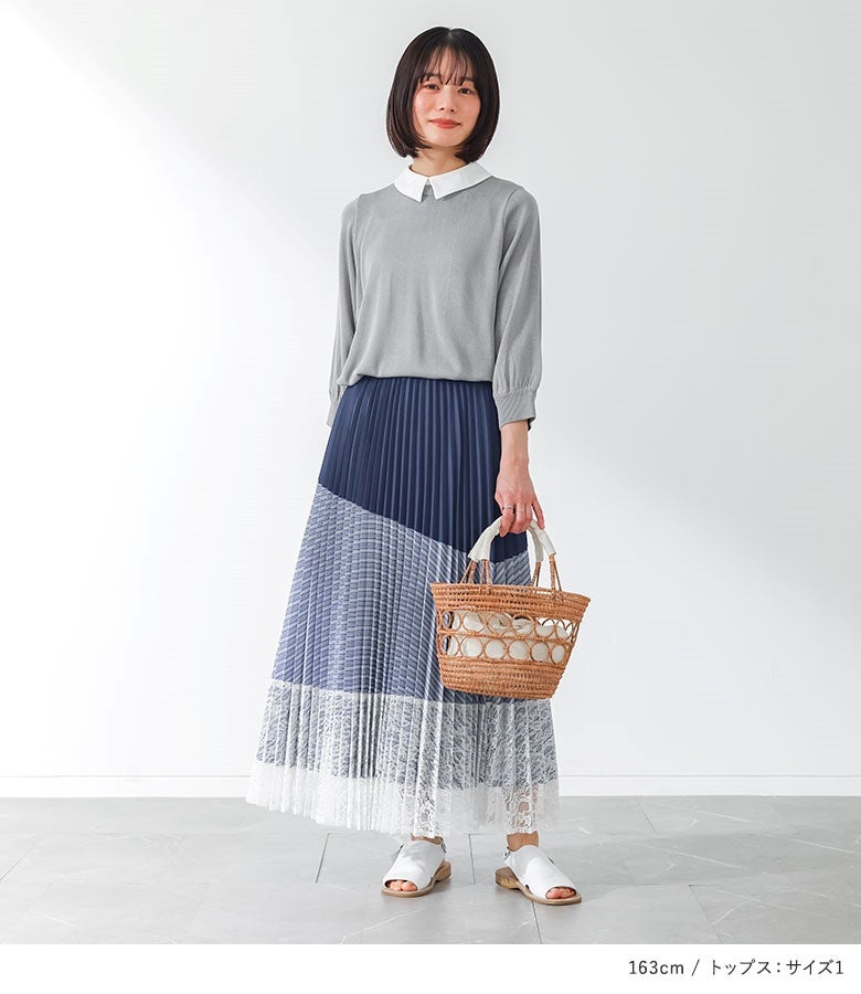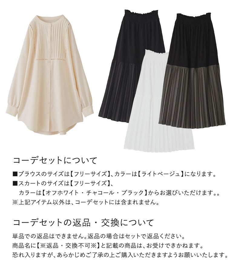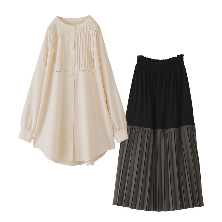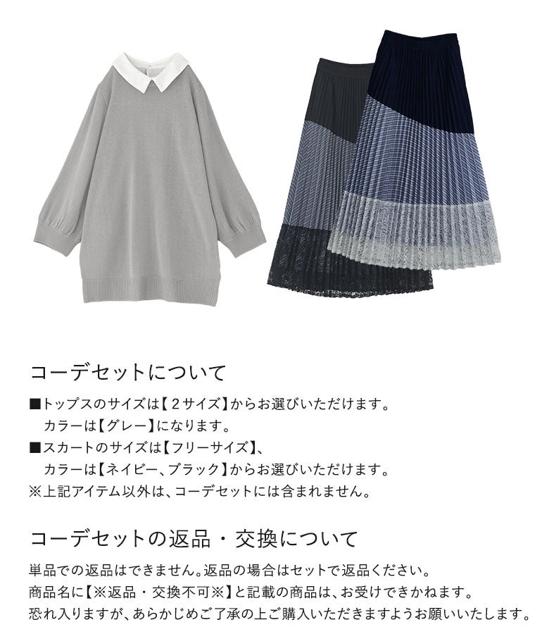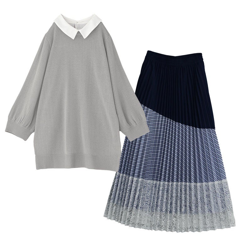 他の画像を見る 届いてすぐにお洒落に変身2点コーデSET♪ 『異素材プリーツ切替スカート×シャツ襟ドッキングニットプルオーバーコーデ2点SET』【メール便不可】【40】 販売開始前です。 販売期間 2026/04/04 10:00 〜 2027/03/30 23:59 ¥ 8,940 税込 (0)