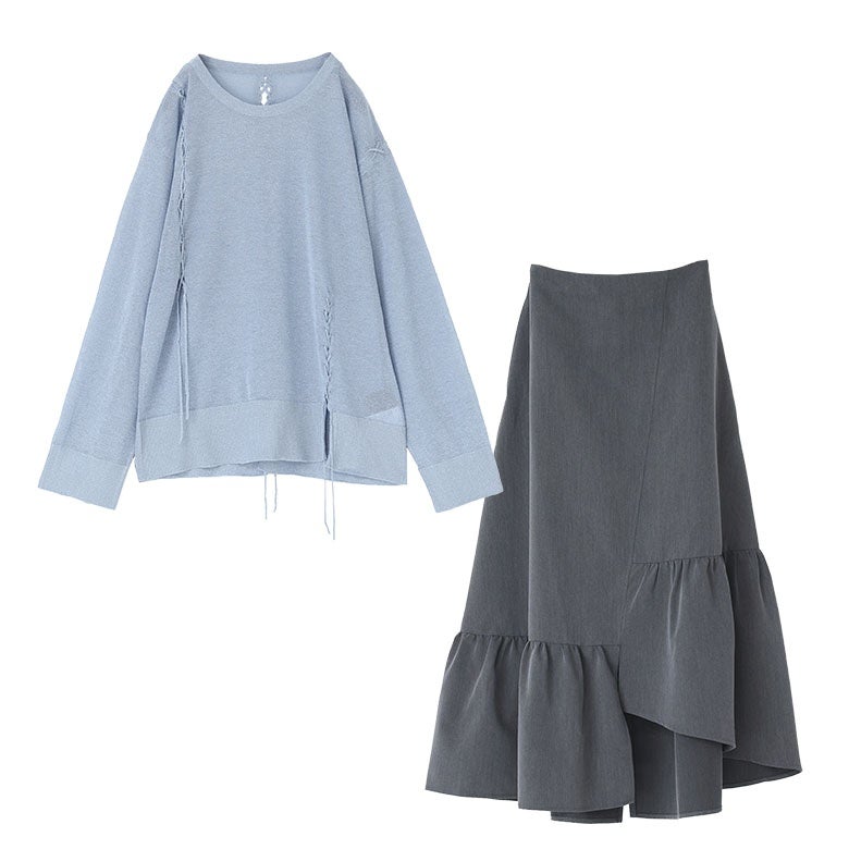 他の画像を見る 届いてすぐにお洒落に変身2点コーデSET♪ 『異素材フリルドッキングスウェット×変形シャーリングデザインスカートコーデ2点SET』【メール便不可】【40】 ¥ 14,960 税込 (0)