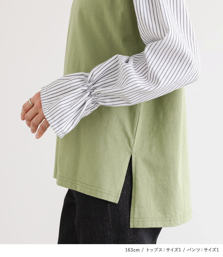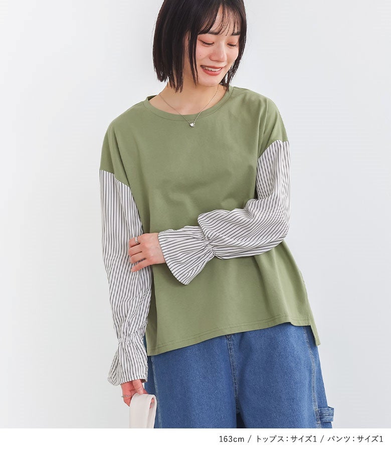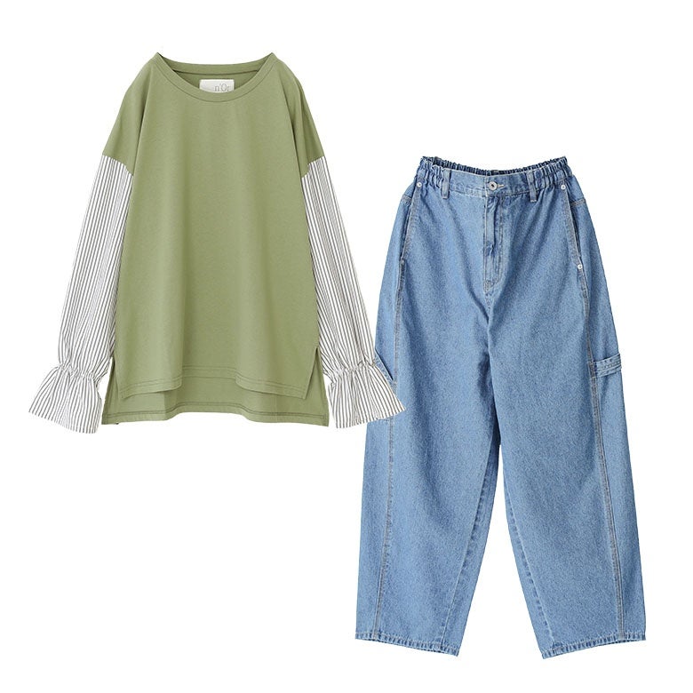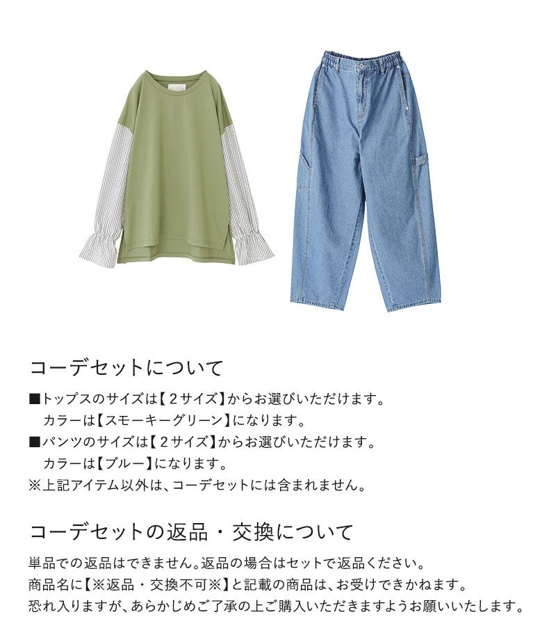 他の画像を見る 届いてすぐにお洒落に変身2点コーデSET♪ 『異素材キャンディースリーブカットソー×サルエルペインターデニムパンツコーデ2点SET』【メール便不可】【40】 販売期間 2026/04/01 10:00 〜 2027/03/26 23:59 ¥ 7,970 税込 (0)