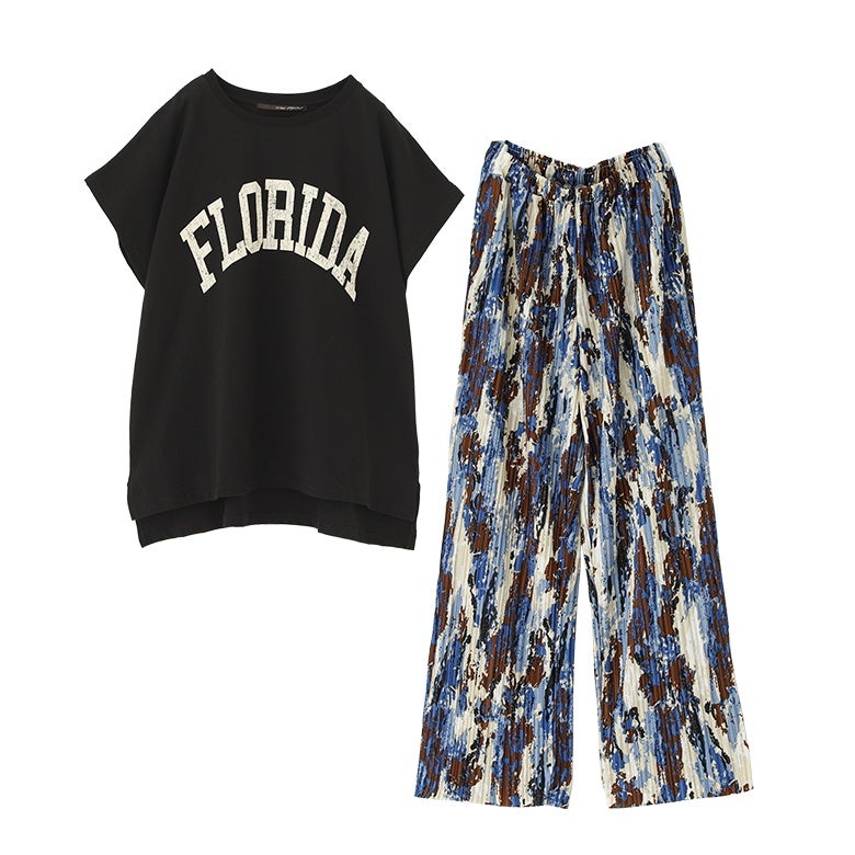 他の画像を見る 届いてすぐにお洒落に変身2点コーデSET♪ 『サイドラインフラワープリントパンツ×変形デザイン半袖風合いスラブニットソーコーデ2点SET』【メール便不可】【20】 ¥ 6,350 税込 (0)
