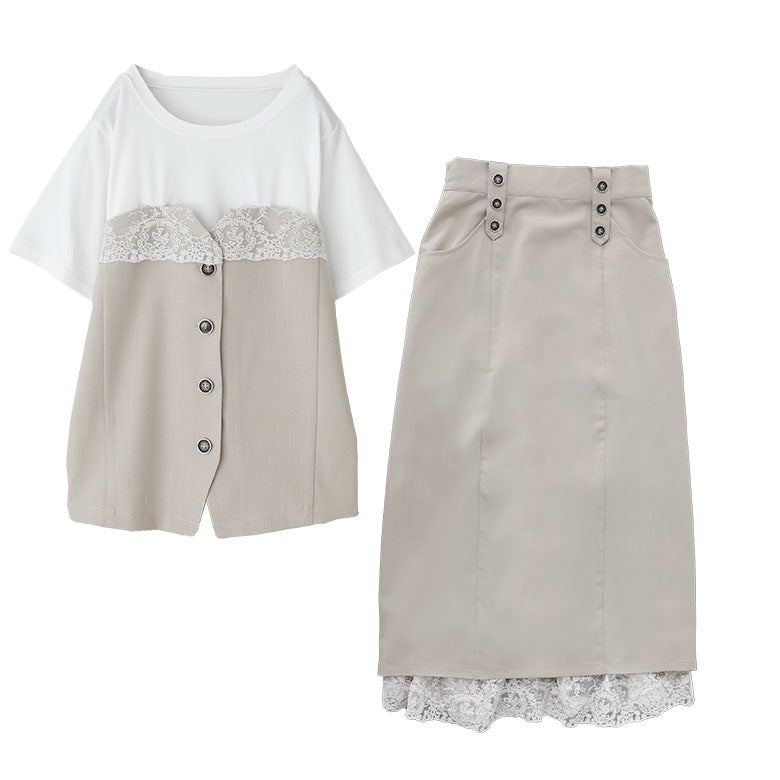他の画像を見る 届いてすぐにお洒落に変身2点コーデSET♪ 『ビスチェドッキングカットソー×レースペチ付きナロースカートコーデ2点SET』【メール便不可】【40】 販売開始前です。 販売期間 2026/04/26 10:00 〜 2027/04/22 23:59 ¥ 12,960 税込 (0)