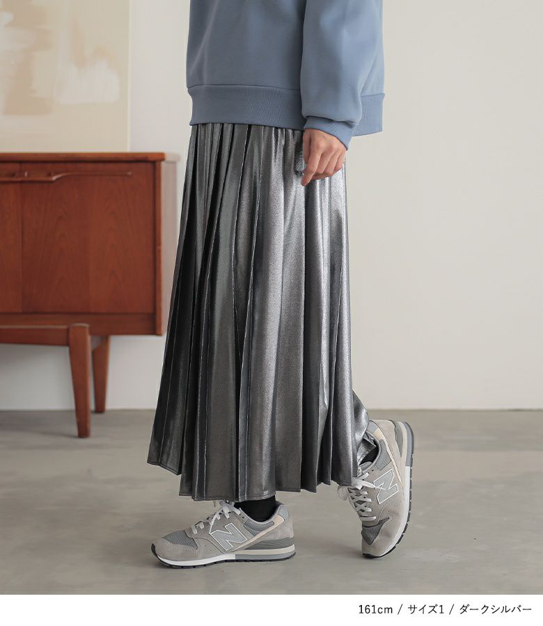 他の画像を見る 選べる2サイズ展開!軽い布帛生地を使用したメタリック調のプリーツスカート。 『n'OrLABELメタリックプリーツスカート』【メール便不可】【20】 ¥ 5,980 税込 4.50 (4)