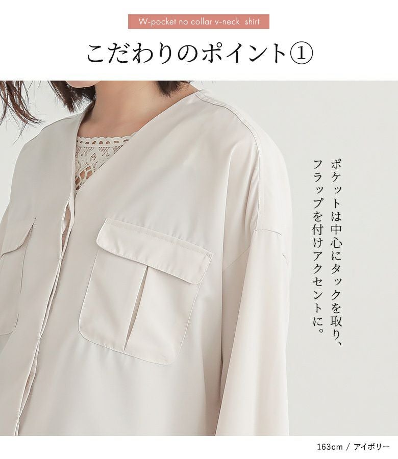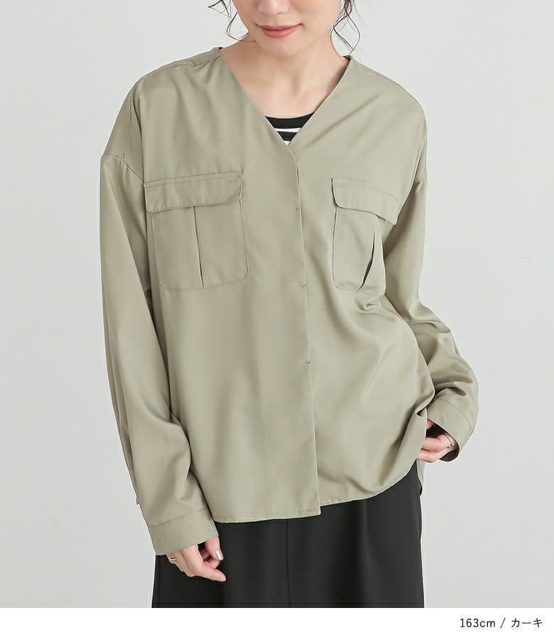 他の画像を見る 【60%OFF】お洒落見え×体型カバーも叶える、大人っぽノーカラーシャツ。 『n'OrLABELVネックWポケットシャツ』※返品交換不可※※メール便可※【10】 販売開始前です。 販売期間 2026/03/05 0:00 〜 2026/03/10 23:59 定価 ¥ 3,960 のところ ¥ 1,584 税込 4.00 (1)