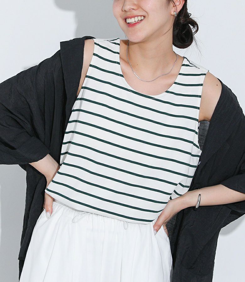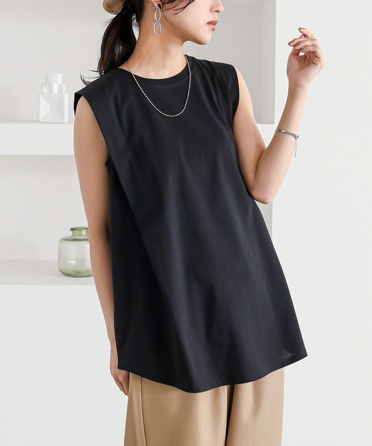 他の画像を見る 選べる2サイズ展開!接触冷感機能付き♪一枚着るだけでサマになるノースリーブカットソー。 『n'OrLABEL接触冷感肩タックノースリーブカットソー』※メール便可※【10】 ¥ 2,590 税込 3.00 (1)