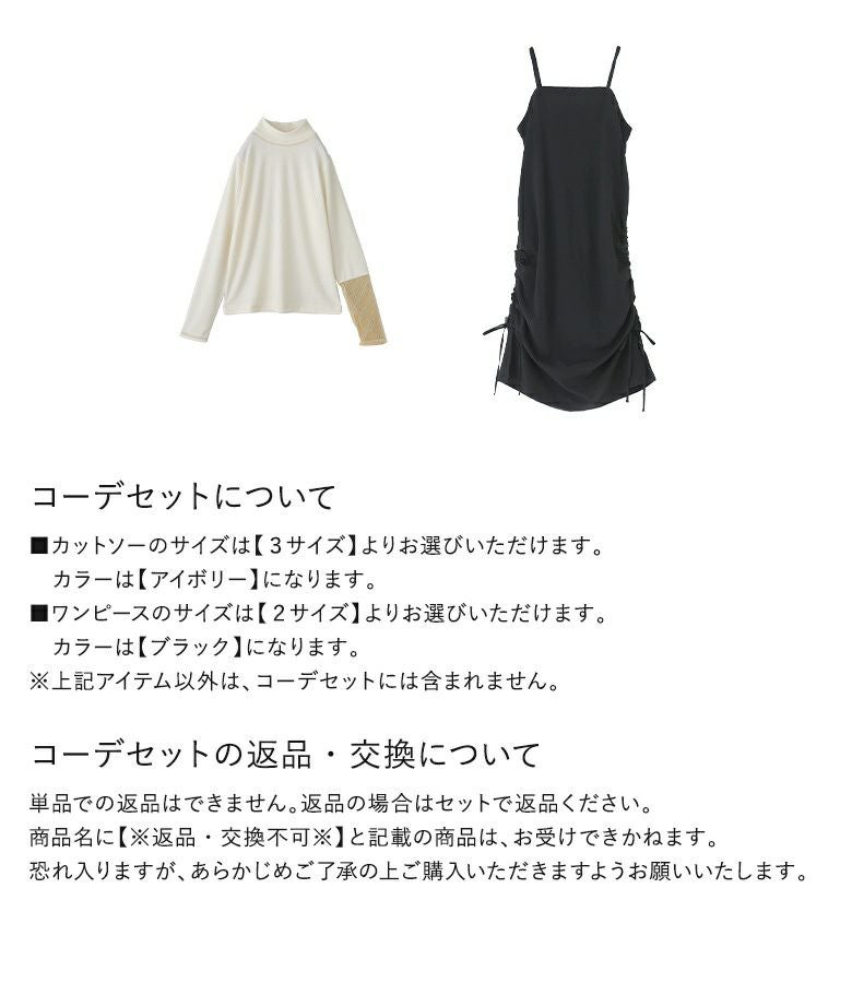 他の画像を見る コーデセット届いてすぐにお洒落に変身2点コーデSET♪ 『ラメ切り替えハイネックリブカットソー×ドロストキャミワンピースコーデ2点SET』【メール便不可】【20】 ¥ 7,920 税込 (0)