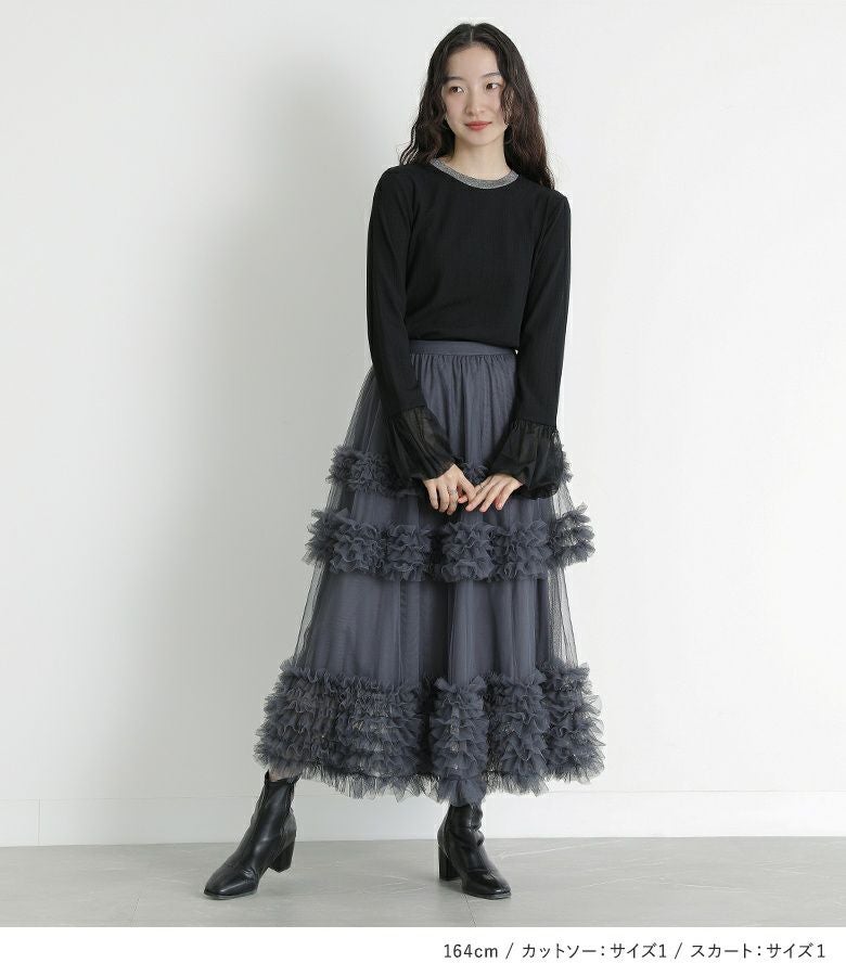 他の画像を見る 送料無料★コーデセット届いてすぐにお洒落に変身2点コーデSET♪ 【送料無料】『袖口チュールリブカットソー×フリルティアードチュールスカートコーデ2点SET』【メール便不可】【40】 ¥ 12,960 税込 (0)