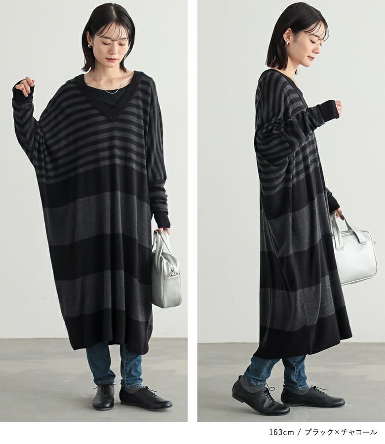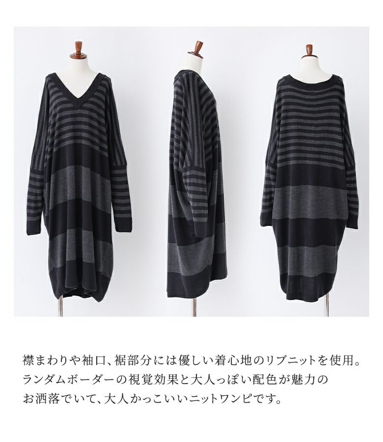他の画像を見る デコルテを綺麗に見せるVネックと配色ボーダーで洗練された雰囲気になるニットワンピース。 『n'OrLABELカシミヤタッチボーダーニットワンピース』【メール便不可】【20】 ¥ 4,980 税込 4.75 (4)