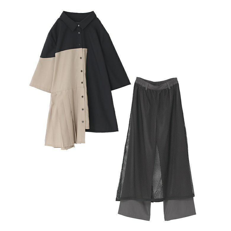 他の画像を見る 送料無料★届いてすぐにお洒落に変身2点コーデSET♪ 【送料無料】『配色プリーツシャツ×メッシュレイヤードパンツコーデ2点SET』【メール便不可】【15】 SOLD OUT ¥ 13,960 税込 (0)