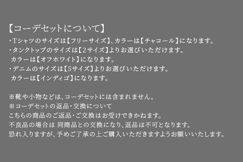 他の画像を見る 送料無料★カットソー×タンクトップ×デニム3点コーデSET♪ 【送料無料】『お洒落に着映えするコーデ3点SET』※返品・交換不可※【メール便不可】【25】 SOLD OUT ¥ 10,440 税込 (0)