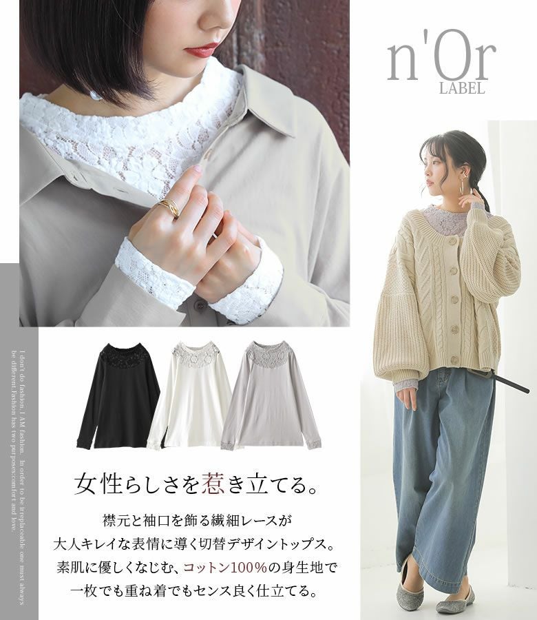 他の画像を見る 【60%OFF】選べるM L LLサイズ展開!一枚でも重ね着でもお洒落な着回しレースロンT♪ 『n'OrLABEL繊細レースコットンロンT』※返品交換不可※※メール便可※【10】 SOLD OUT 定価 ¥ 3,960 のところ ¥ 1,584 税込 4.44 (32)