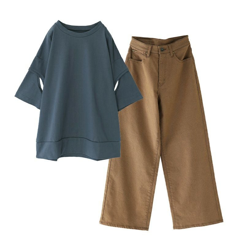 他の画像を見る 送料無料★コーデセット届いてすぐにお洒落に変身2点コーデSET♪ 【送料無料】『カーブラインデザインスリーブカットソー×ストレートワイドパンツコーデ2点SET』【メール便不可】【20】 ¥ 9,480 税込 (0)