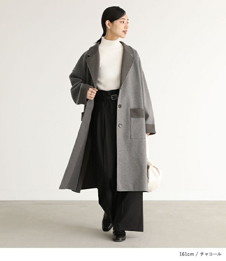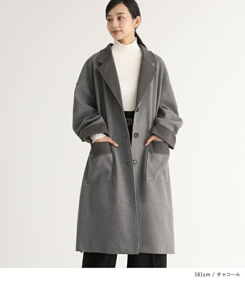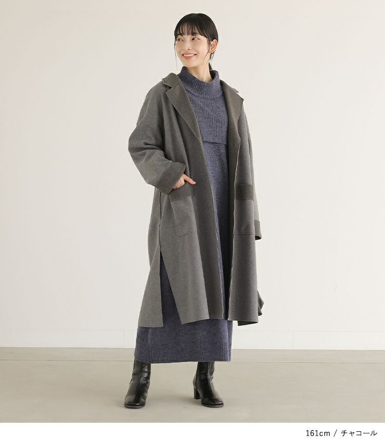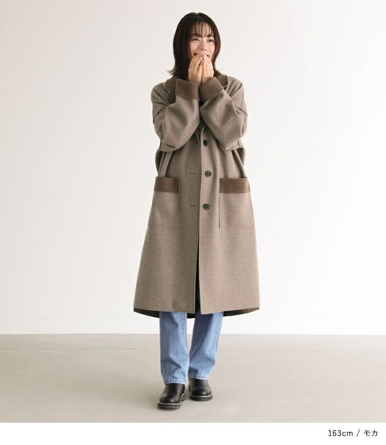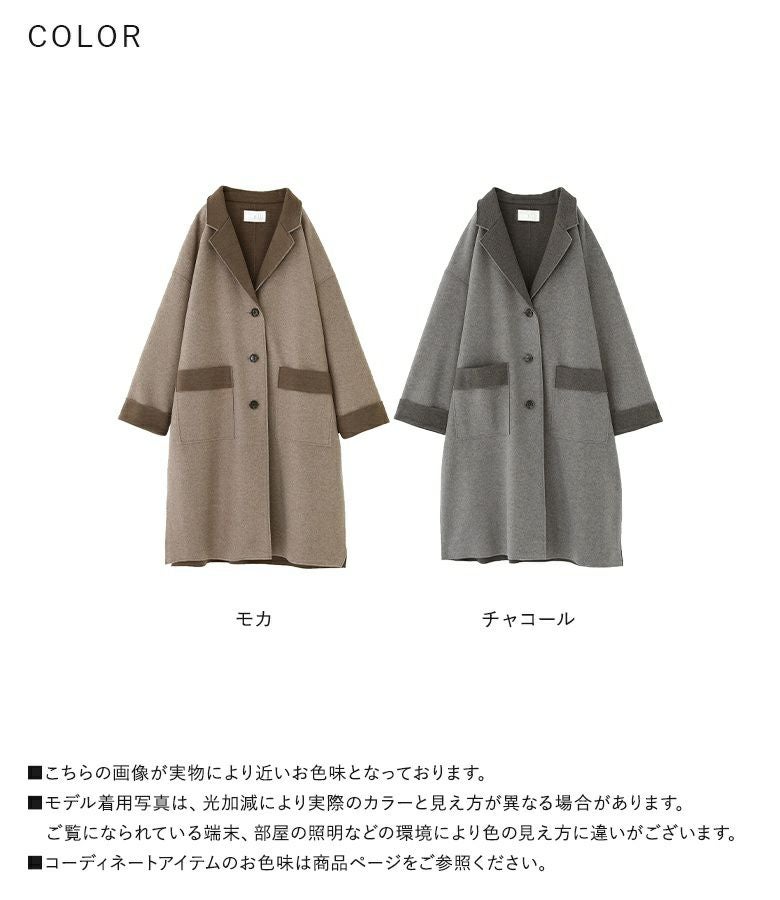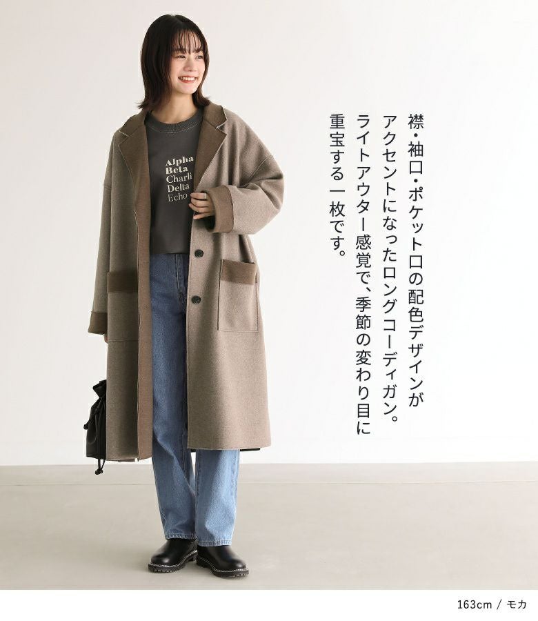 他の画像を見る 襟・袖口・ポケット口の配色デザインがアクセントになったロングコーディガン。 『n'OrLABELダブルフェイスコーディガン』【メール便不可】【30】 ¥ 7,980 税込 5.00 (2)