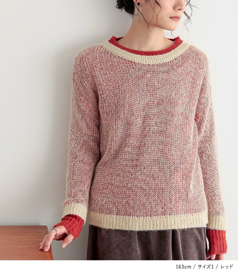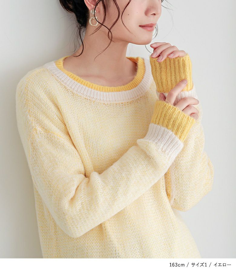 他の画像を見る 選べる2サイズ展開!袖口リブと襟の配色デザインが効いたレイヤード風ニット。 『n'OrLABEL配色レイヤードモヘヤタッチニット』※メール便可※【10】 ¥ 3,960 税込 4.50 (2)