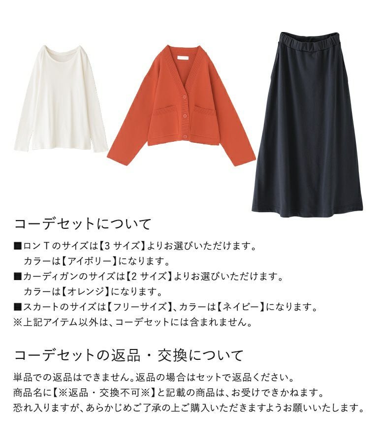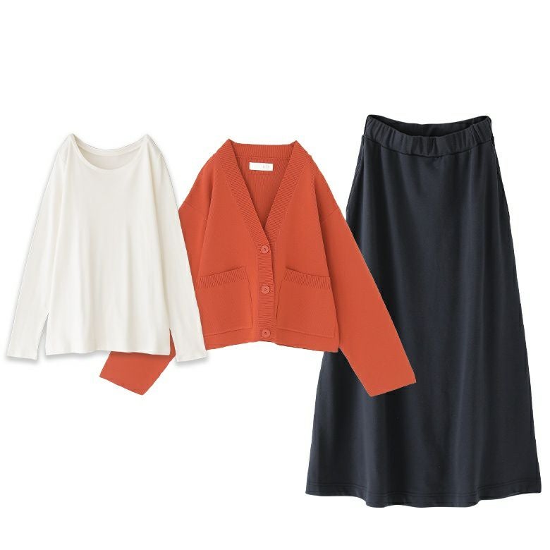他の画像を見る 送料無料★届いてすぐにお洒落に変身3点コーデSET♪ 【送料無料】『お洒落ラフロングスカート×吸湿発熱ラウンドネックロンT×スポンジニットショートカーディガンコーデ3点SET』【メール便不可】【65】 ¥ 11,530 税込 (0)