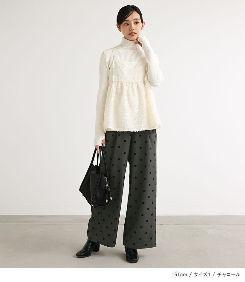 他の画像を見る 選べる2サイズ展開!フロッキープリントのドット柄が大人可愛いワイドパンツ。 『n'OrLABELフロッキードットワイドパンツ』【メール便不可】【20】 ¥ 4,980 税込 5.00 (1)