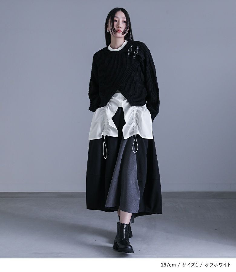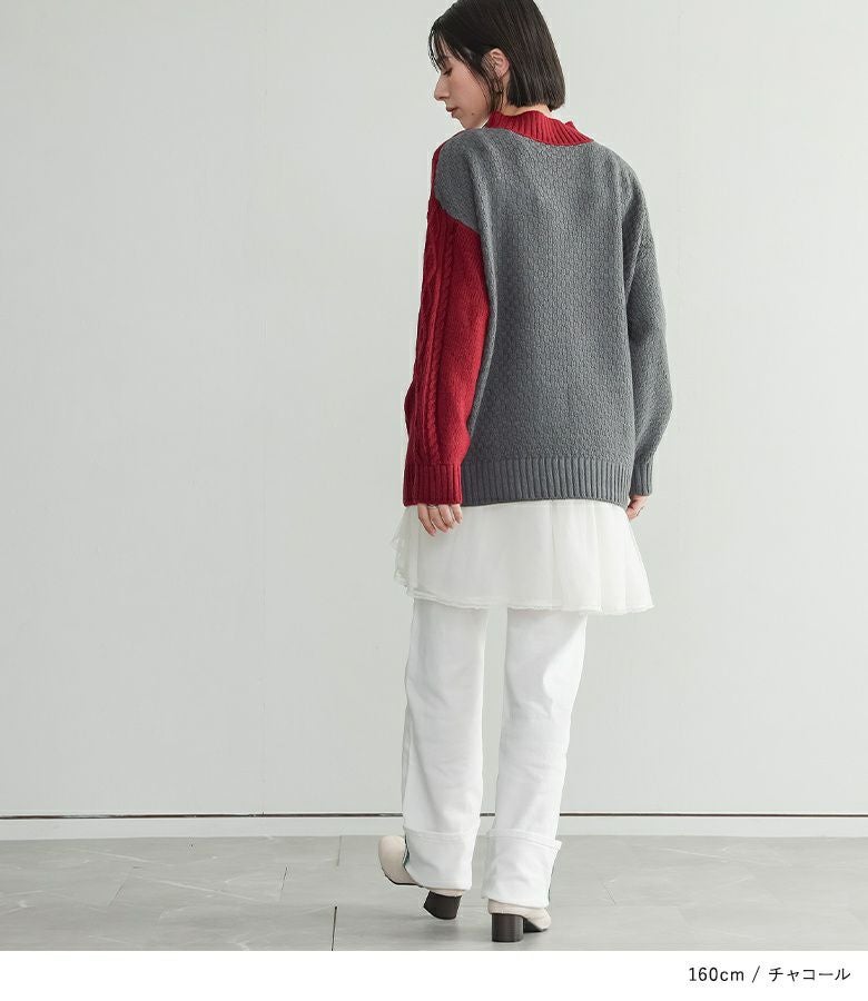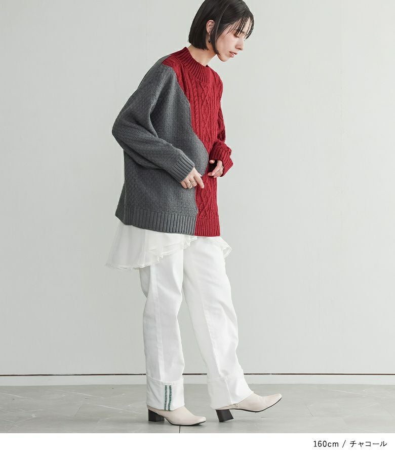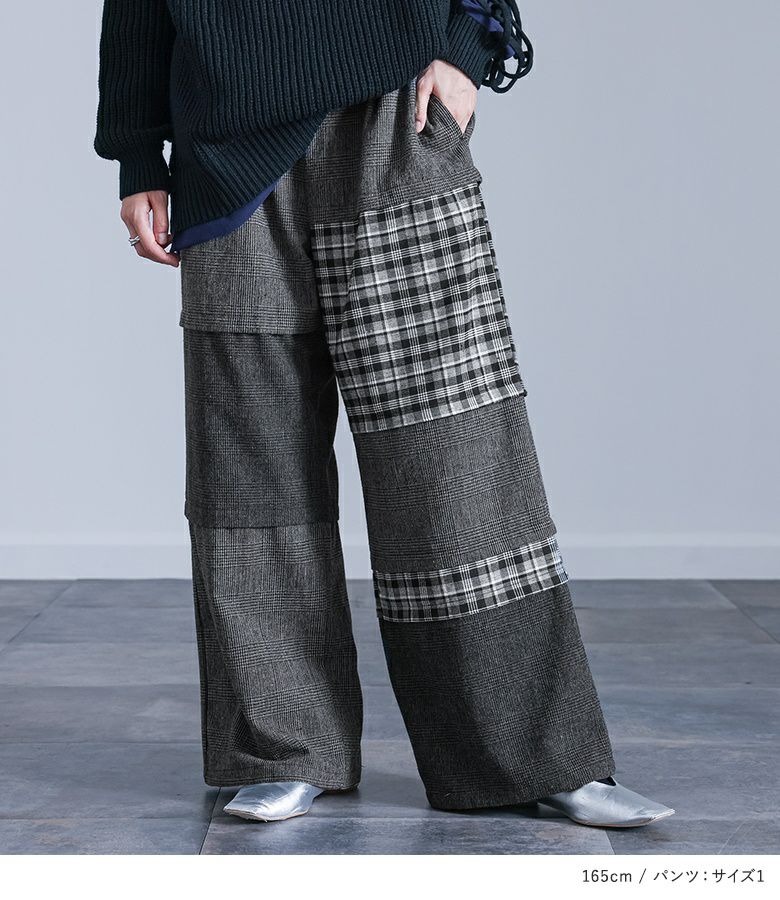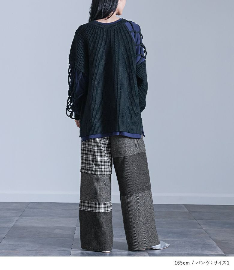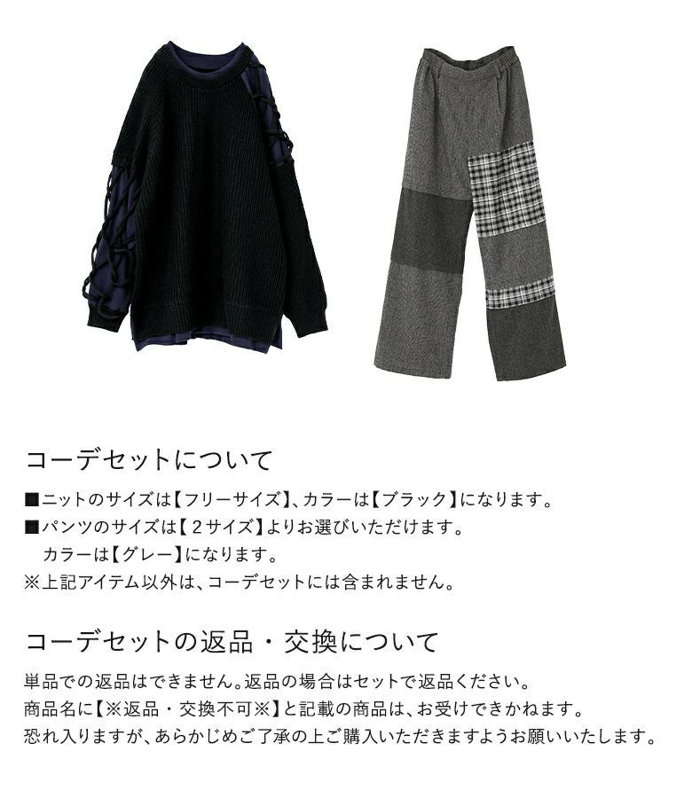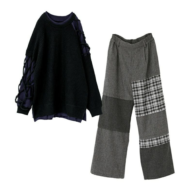 他の画像を見る 送料無料★届いてすぐにお洒落に変身2点コーデSET♪ 【送料無料】『異素材ドッキングクロスデザインニット×チェック切替ワイドパンツコーデ2点SET』【メール便不可】【60】 ¥ 14,960 税込 (0)