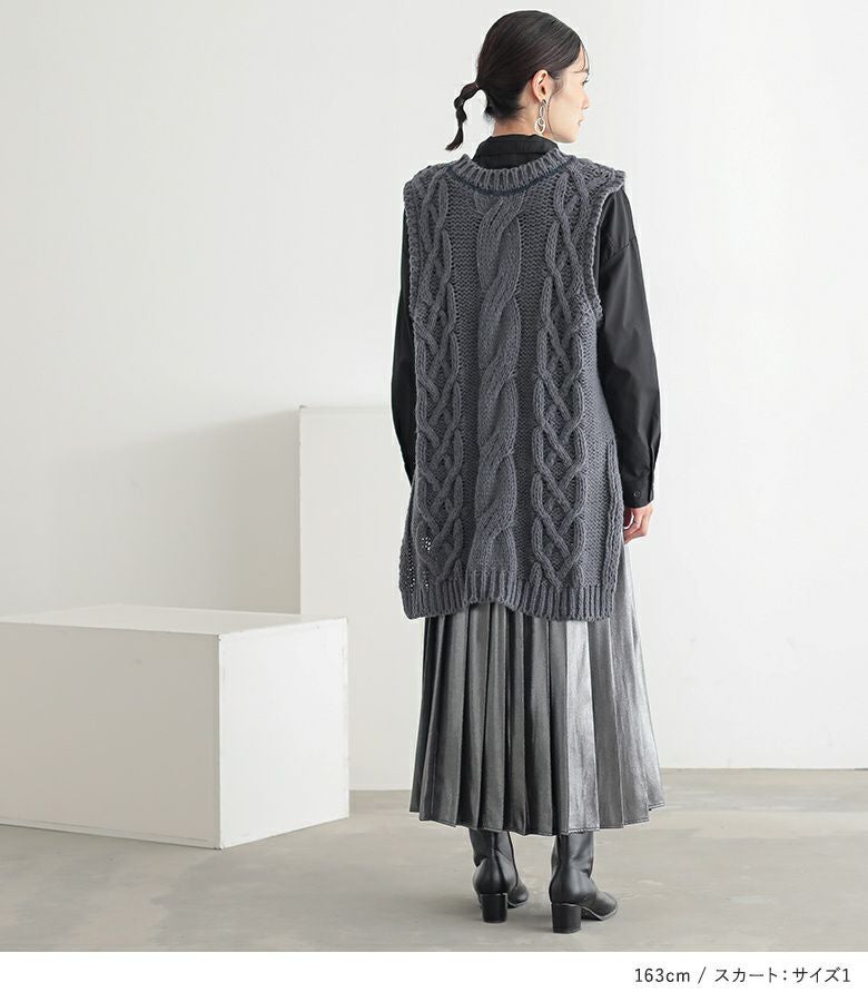 他の画像を見る 送料無料★届いてすぐにお洒落に変身3点コーデSET♪ 【送料無料】『ローゲージケーブルニットベスト×バックボタンスリットシャツ×メタリックプリーツスカートコーデ3点SET』【メール便不可】【55】 ¥ 14,920 税込 (0)
