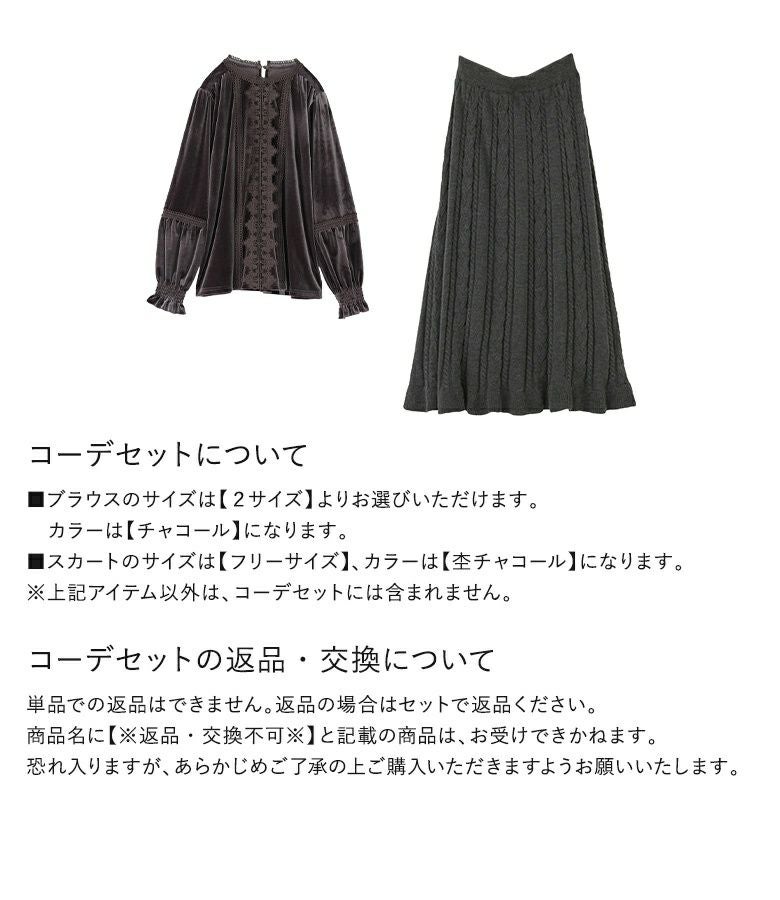 他の画像を見る 送料無料★届いてすぐにお洒落に変身2点コーデSET♪ 【送料無料】『レースベロアブラウス×ケーブルニットフレアスカートコーデ2点SET』【メール便不可】【40】 ¥ 13,960 税込 (0)