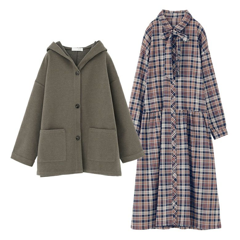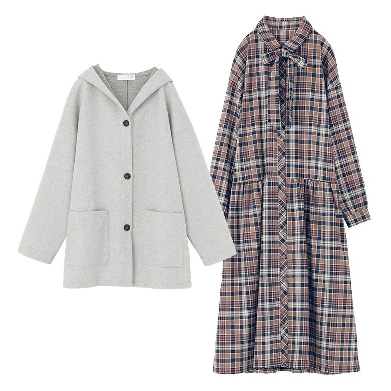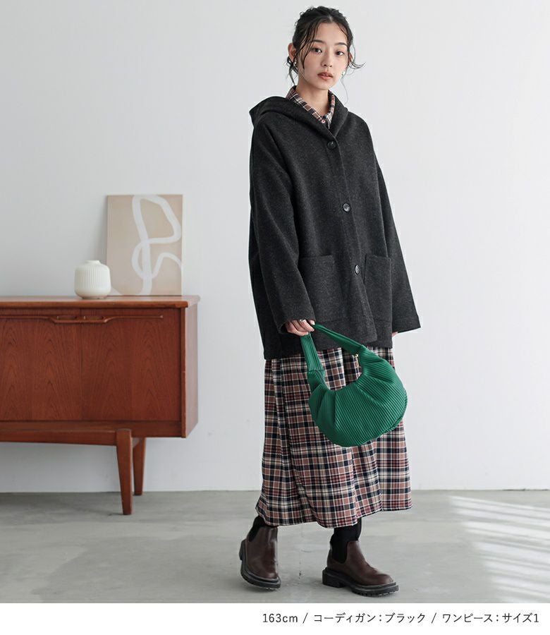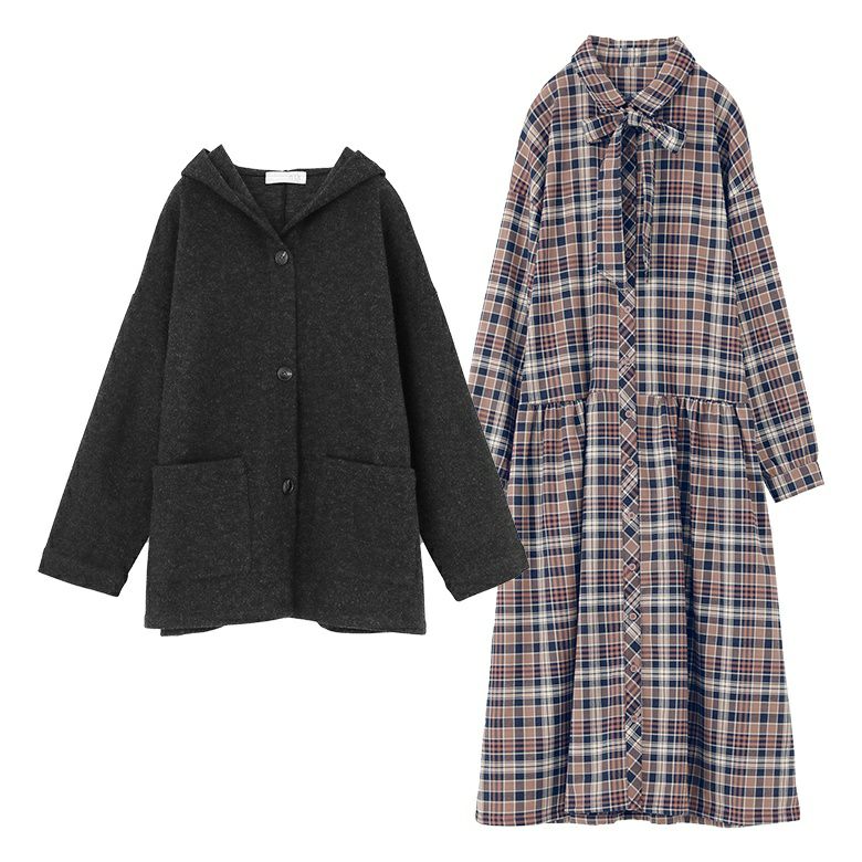他の画像を見る 送料無料★届いてすぐにお洒落に変身2点コーデSET♪ 【送料無料】『フード付きウールライクコーディガン×ボウタイ付きチェックワンピースコーデ2点SET』【メール便不可】【70】 ¥ 11,960 税込 (0)