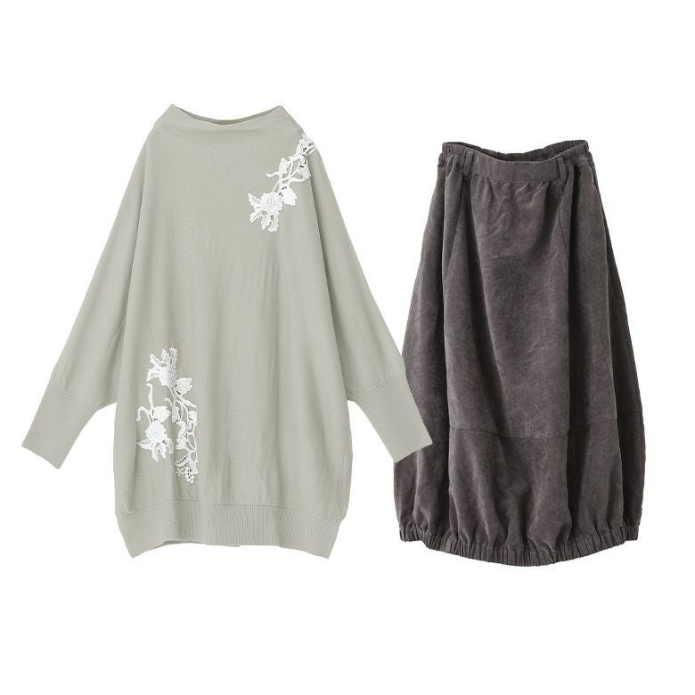 他の画像を見る 送料無料★届いてすぐにお洒落に変身2点コーデSET♪ 【送料無料】『レースモチーフドルマンチュニックニット×微起毛コクーンスカートコーデ2点SET』【メール便不可】【50】 ¥ 9,570 税込 (0)