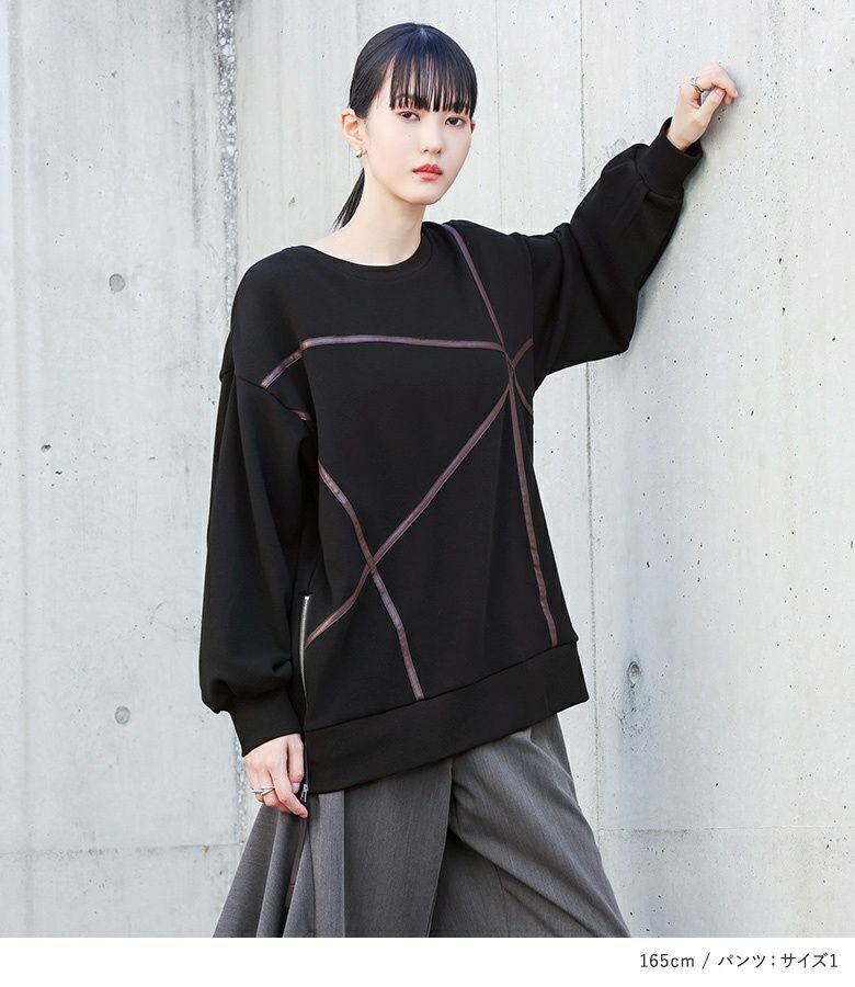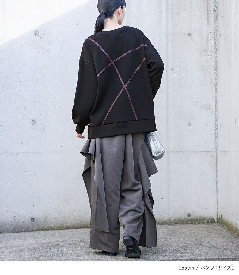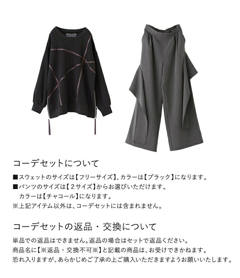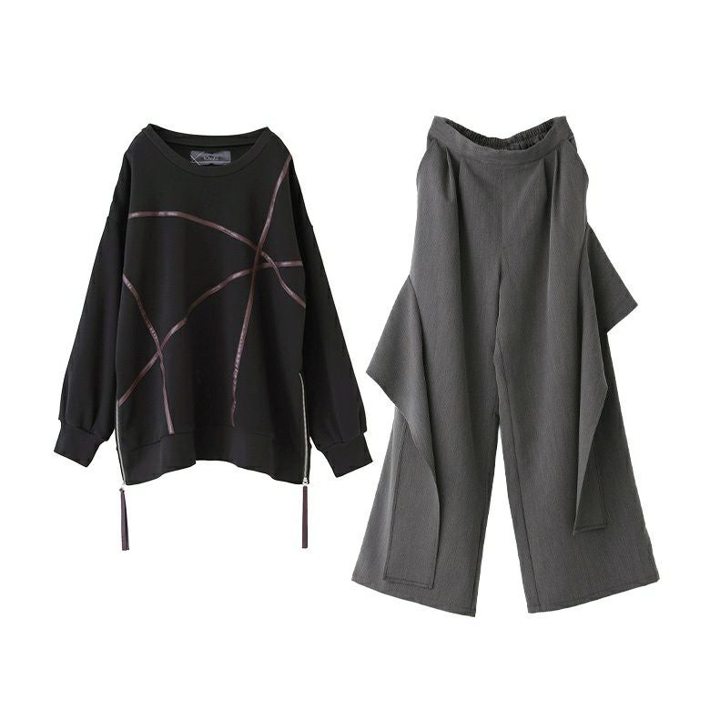 他の画像を見る 送料無料★届いてすぐにお洒落に変身2点コーデSET♪ 【送料無料】『フェイクレザーライン裏シャギースウェット×フレアモチーフワイドパンツコーデ2点SET』【メール便不可】【40】 ¥ 12,960 税込 (0)