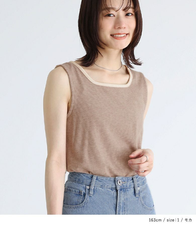 他の画像を見る 【3/5販売】選べるM~3Lサイズ展開!デコルテをスッキリ見せるリブタンクトップ。 『n'OrLABEL配色スクエアネックリブタンクトップ』※メール便可※【5】 ¥ 2,590 税込 3.00 (1)
