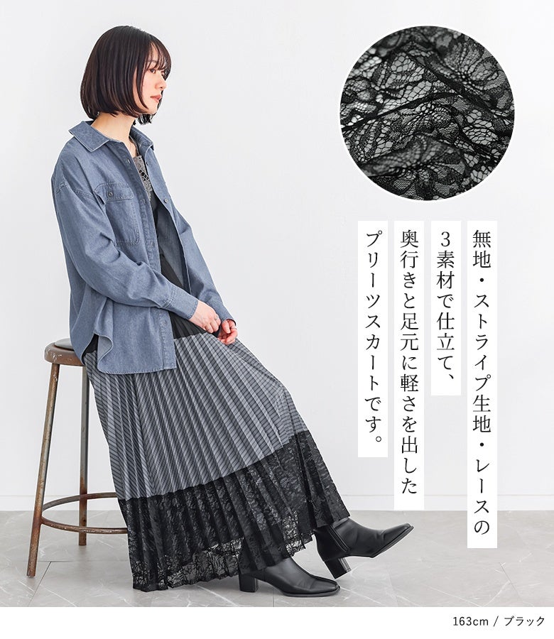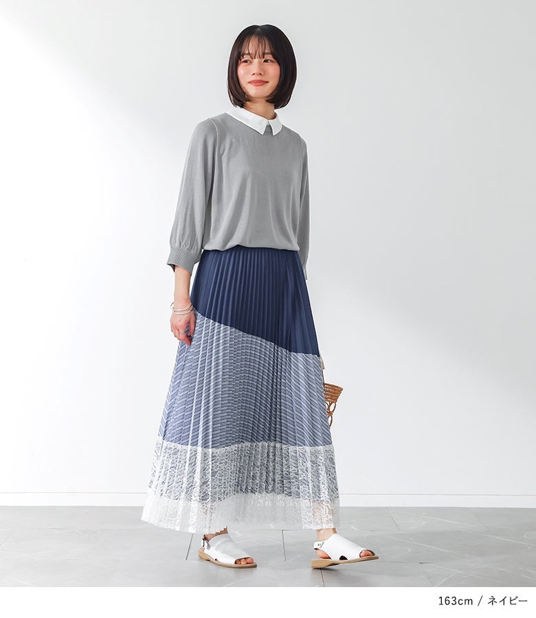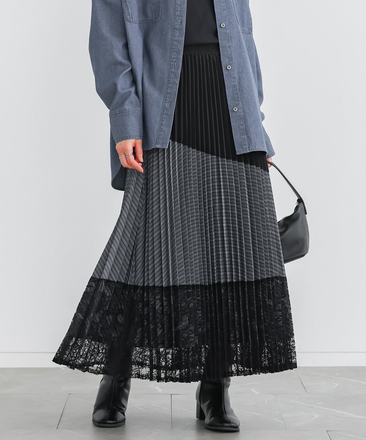 他の画像を見る 無地×ストライプ×レースで仕立てた異素材プリーツスカート。 『n'OrLABEL異素材プリーツ切替スカート』【メール便不可】【20】 販売開始前です。 販売期間 2026/03/05 10:00 〜 2027/02/25 23:59 ¥ 4,980 税込 (0)