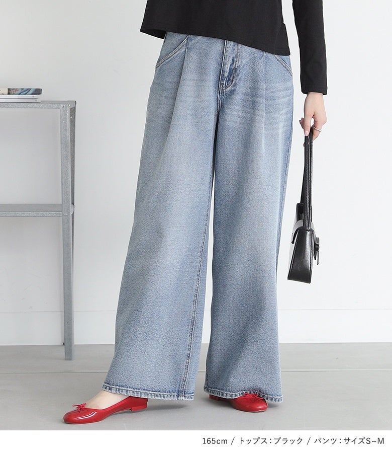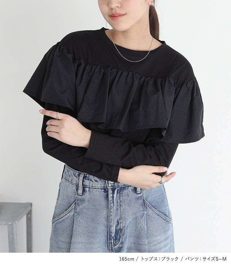 他の画像を見る 届いてすぐにお洒落に変身2点コーデSET♪ 『フリル切り替えトップス×タックデニムパンツコーデ2点SET』【メール便不可】【40】 販売期間 2026/03/04 10:00 〜 2027/03/02 23:59 ¥ 9,570 税込 (0)