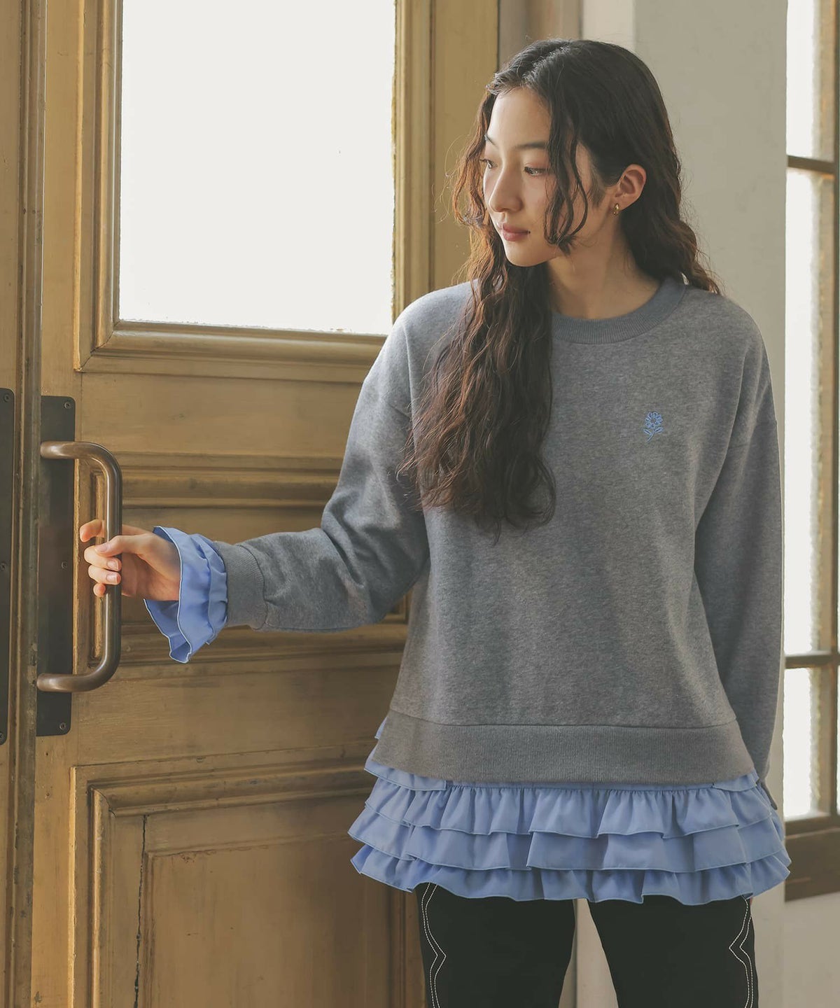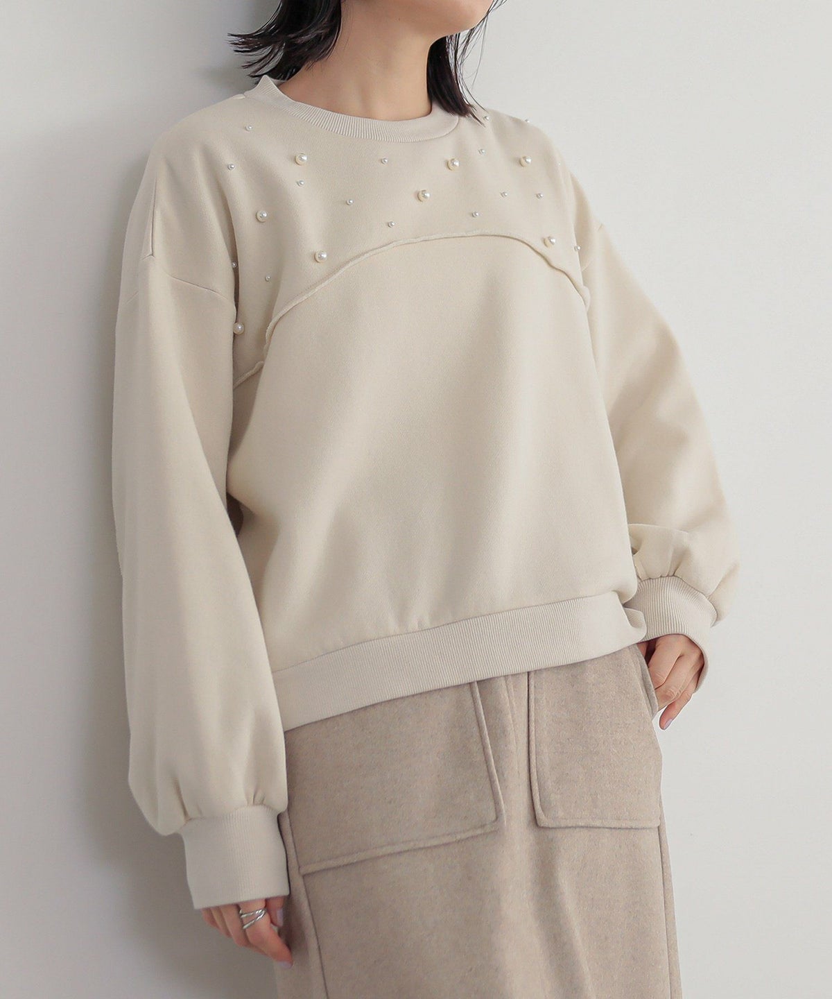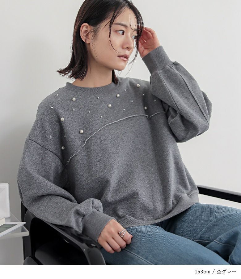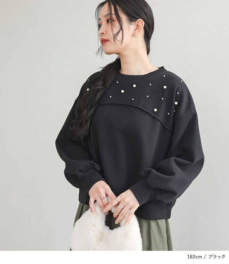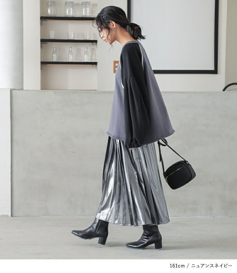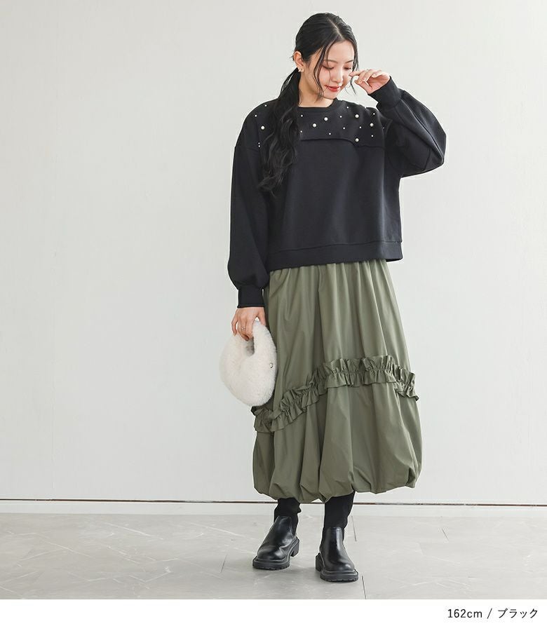 他の画像を見る 選べる2サイズ展開!袖口と裾に布帛生地のフリルをドッキングさせたスウェット。 『somari imaginationフリルデザイン裏起毛スウェット』【メール便不可】【30】 ¥ 6,980 税込 5.00 (4)
