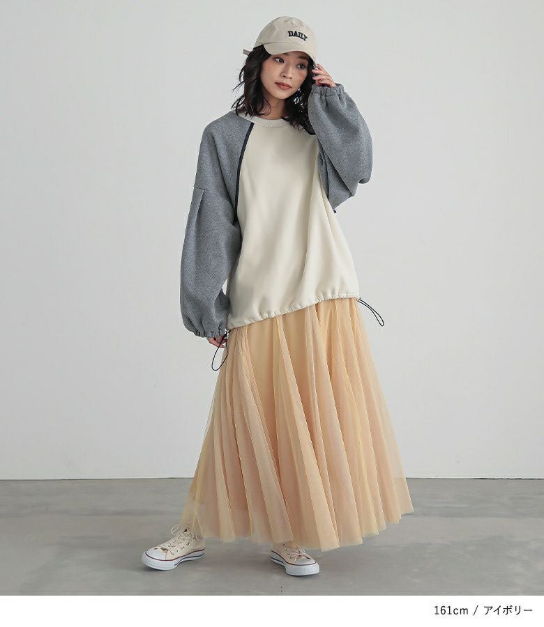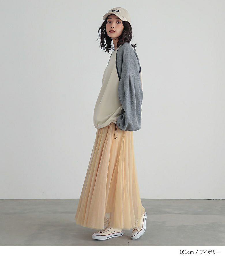 他の画像を見る 選べる2サイズ展開!ニットの上にチュールを重ねた、異素材デザインのトップス。 『somari imaginationチュールレイヤーニット』【メール便不可】【30】 ¥ 7,980 税込 5.00 (1)