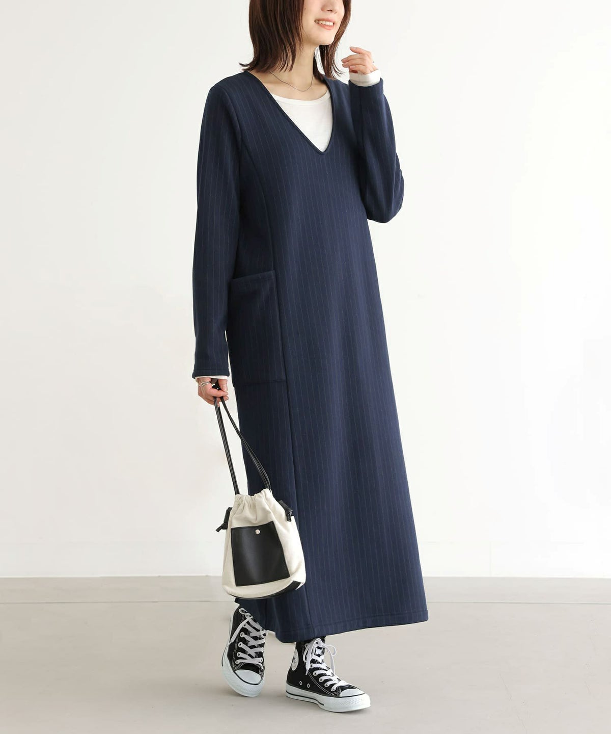 他の画像を見る 選べる2サイズ展開!すっきり見えのあったか裏シャギーピンストライプワンピース。 『n'OrLABEL裏シャギーピンストライプワンピース』【メール便不可】【30】 ¥ 4,980 税込 4.88 (8)