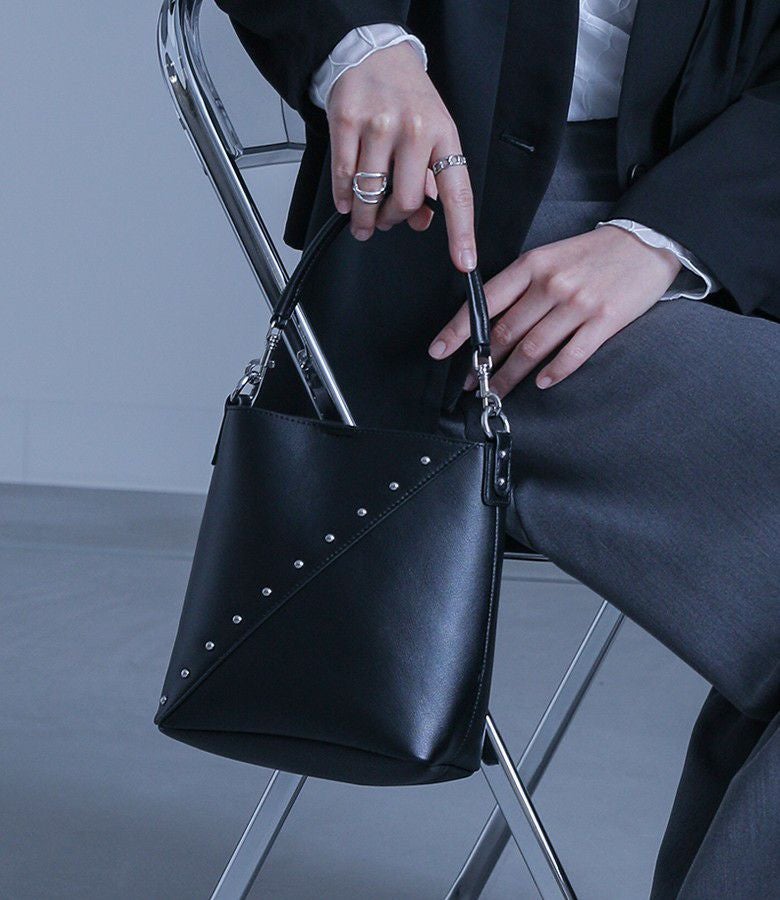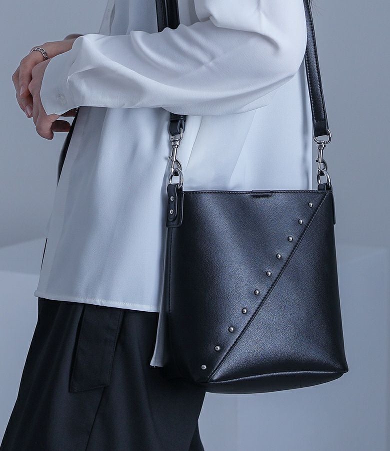 他の画像を見る 斜めに施されたシルバースタッズがアクセントの小さめながらも長財布が入るサイズ感のバッグ。 『kOhAKUリサイクルレザースタッズバッグ』【メール便不可】【50】 ¥ 6,980 税込 4.00 (1)