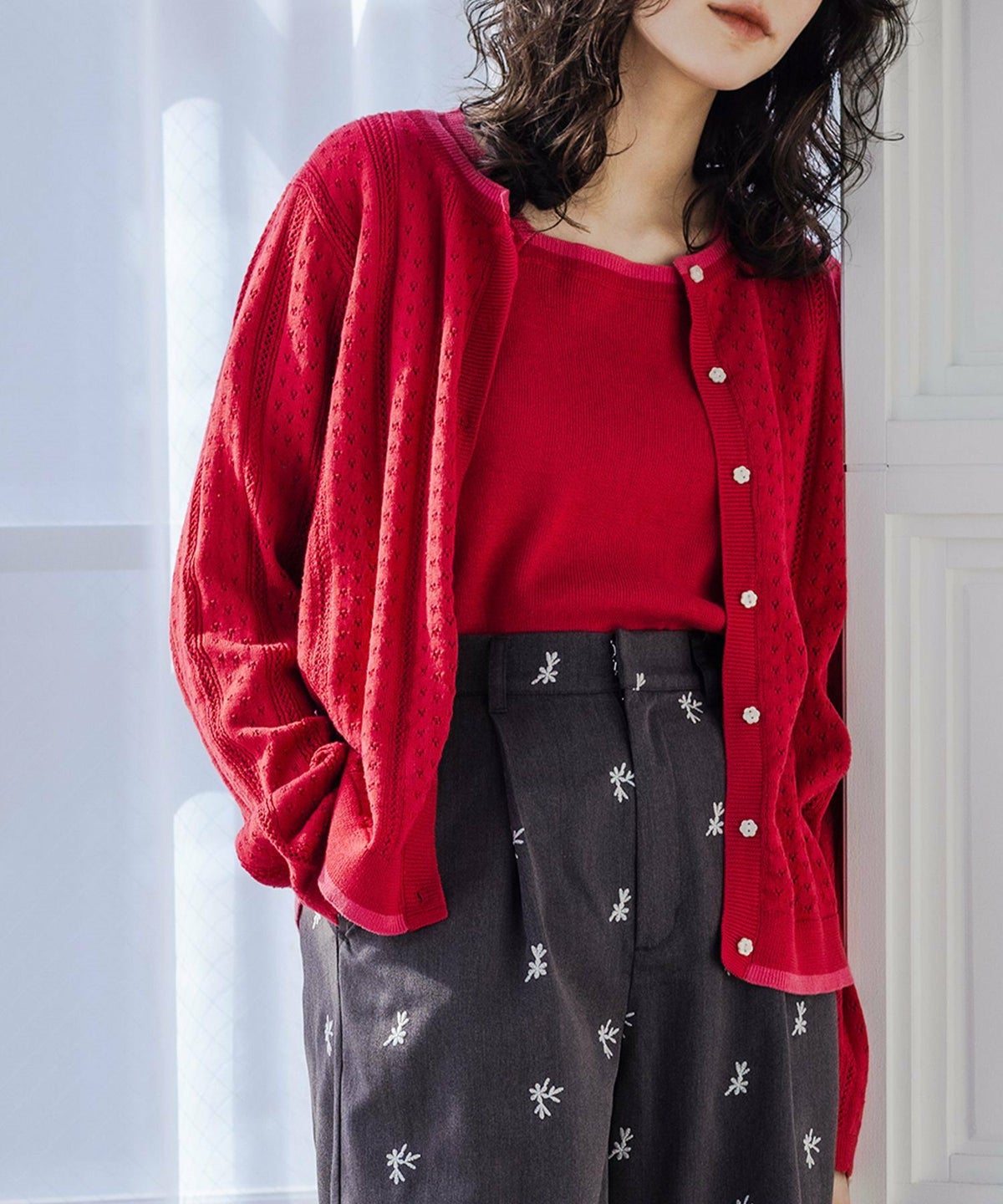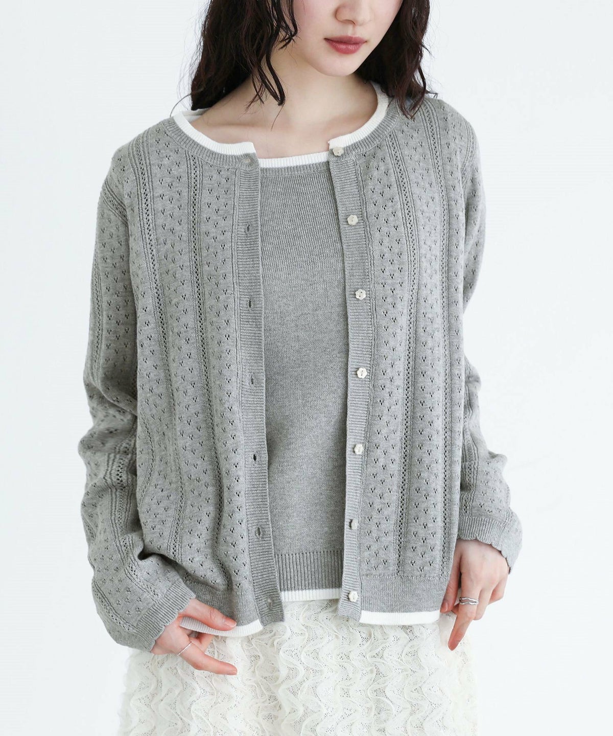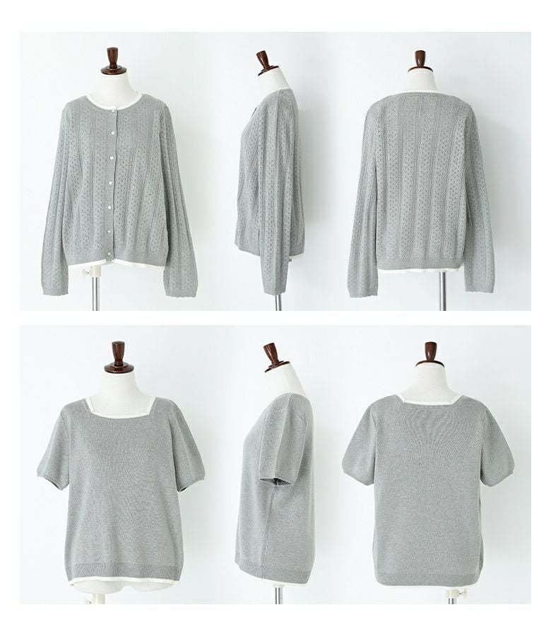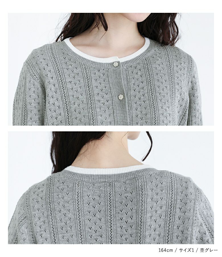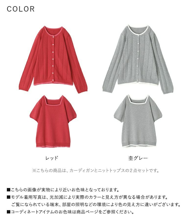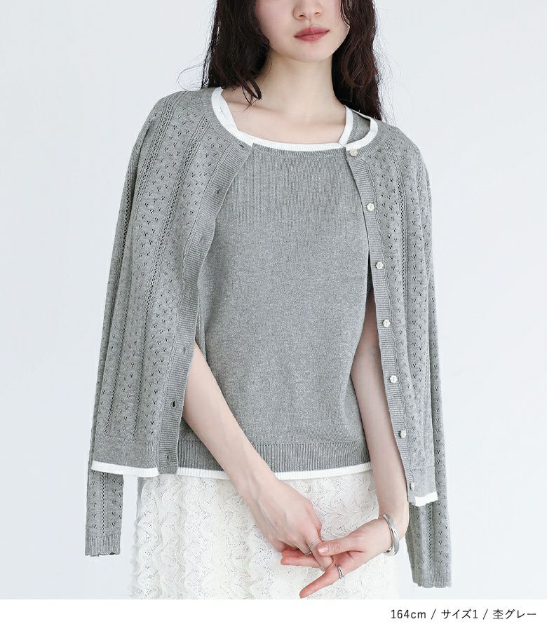 他の画像を見る 選べる2サイズ展開!上品な大人のお洒落が決まるアンサンブルニット。 『somari imagination配色透かし編みアンサンブルニット』【メール便不可】【30】 ¥ 7,980 税込 (0)