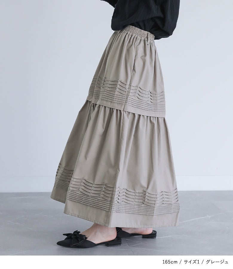他の画像を見る 選べる2サイズ展開!ピンタックデザインがほどこされたフレアスカート。 『somari imaginationピンタックフレアスカート』【メール便不可】【30】 ¥ 6,980 税込 4.00 (1)