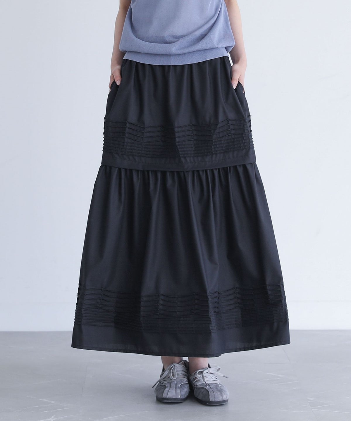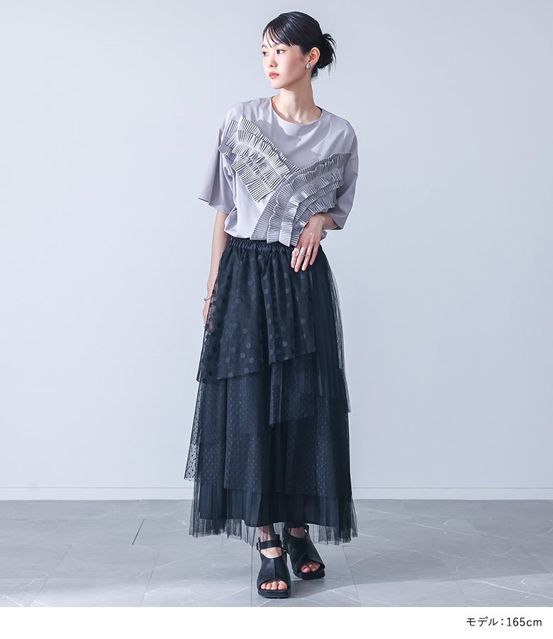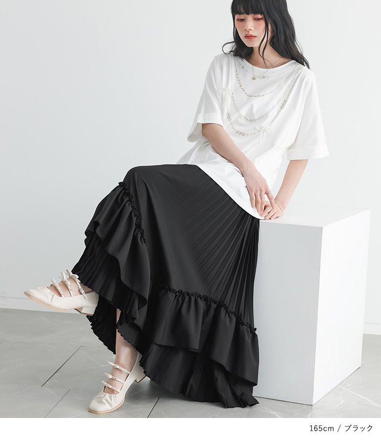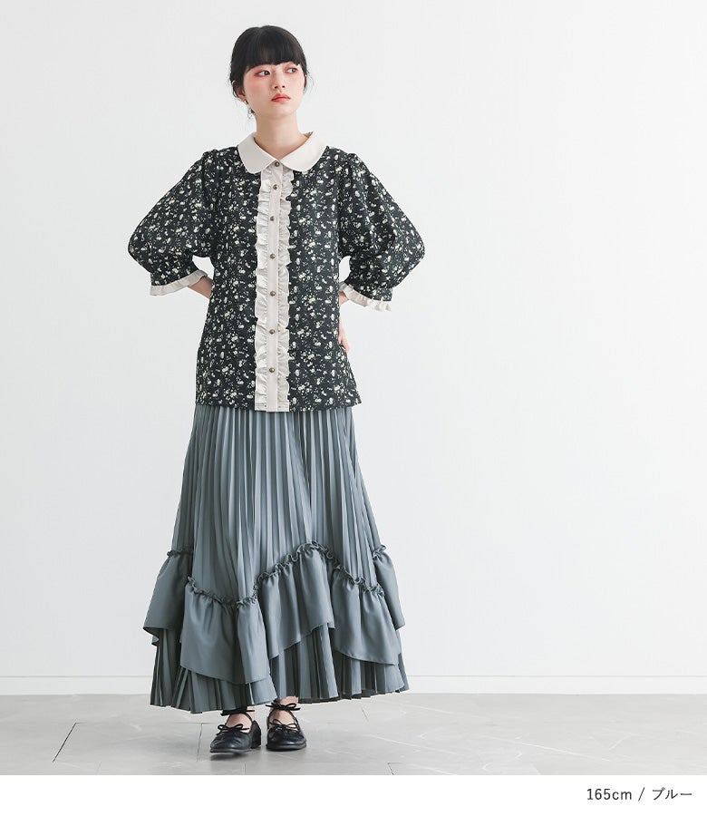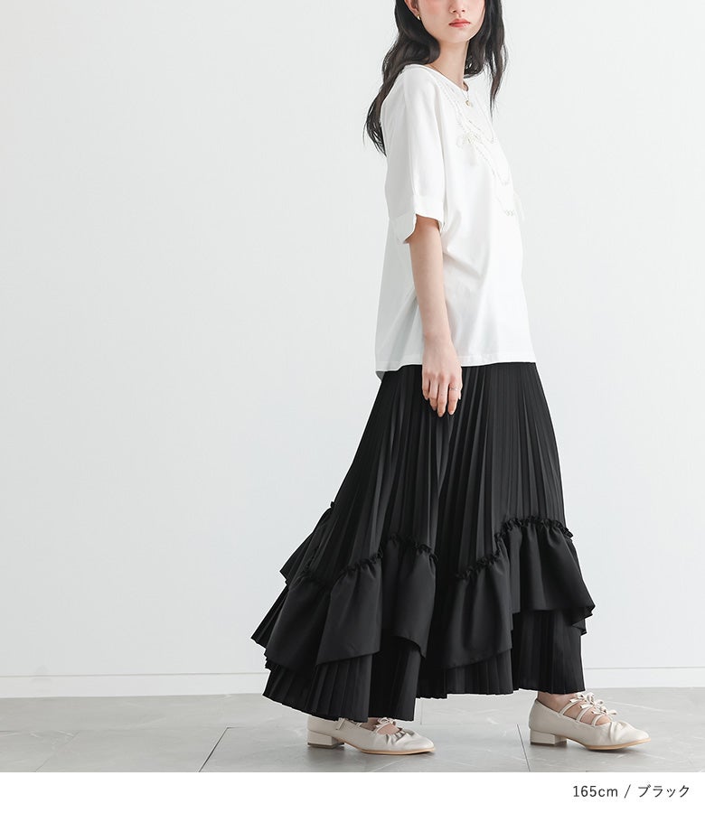 他の画像を見る カーブラインでフリルをあしらった、ボリューム感あふれるプリーツティアードスカート。 『somari imaginationティアードプリーツスカート』【メール便不可】【40】 ¥ 7,980 税込 5.00 (2)