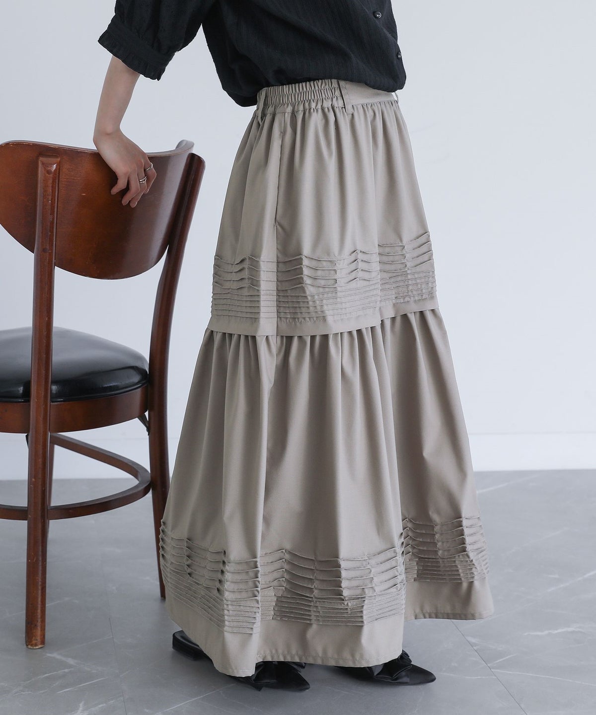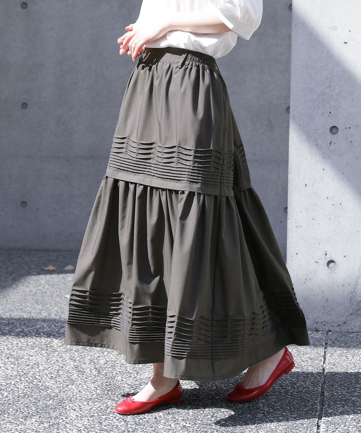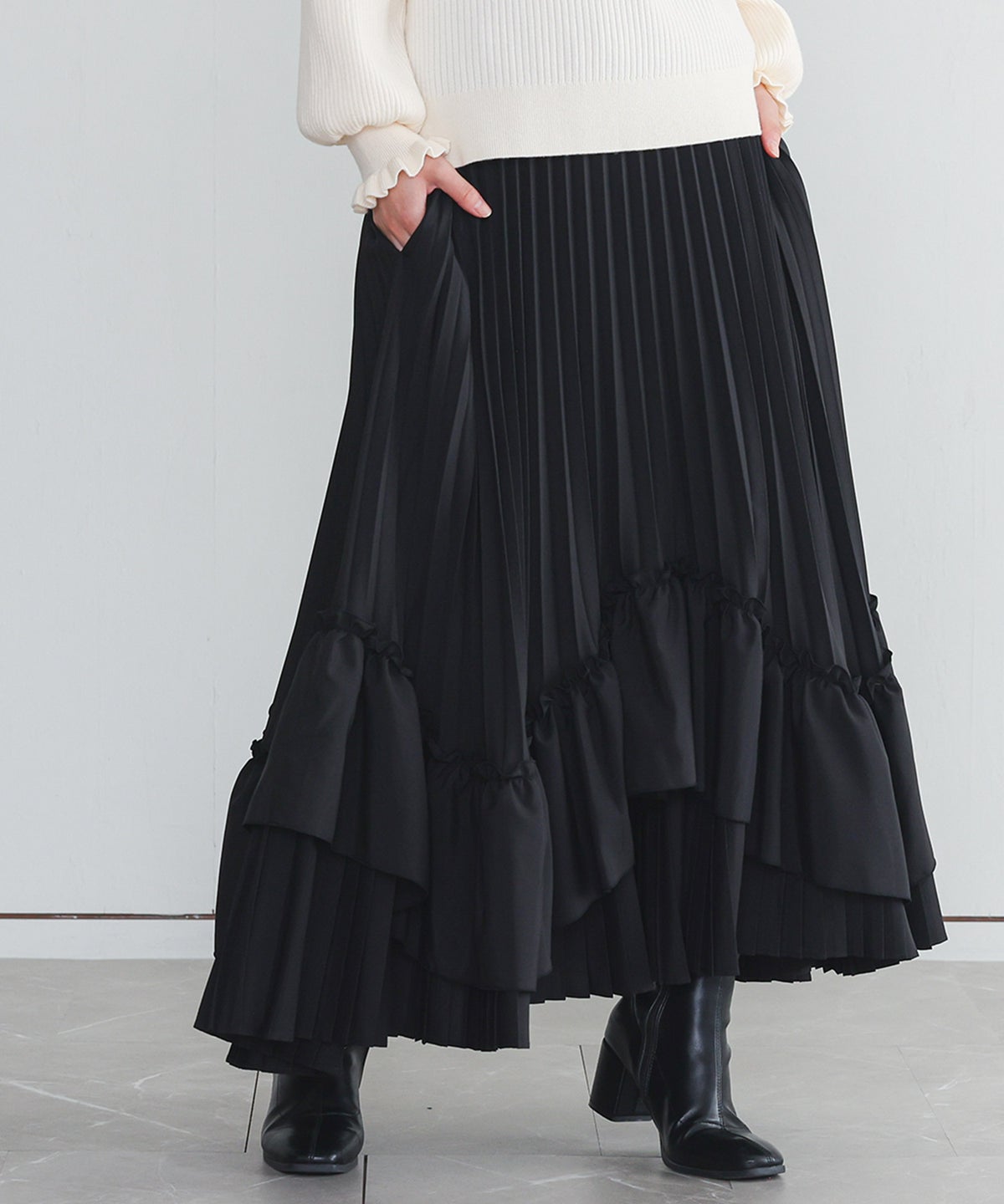 他の画像を見る カーブラインでフリルをあしらった、ボリューム感あふれるプリーツティアードスカート。 『somari imaginationティアードプリーツスカート』【メール便不可】【40】 ¥ 7,980 税込 5.00 (2)