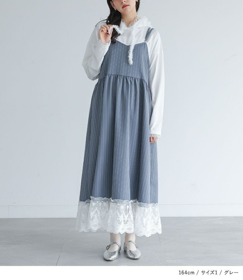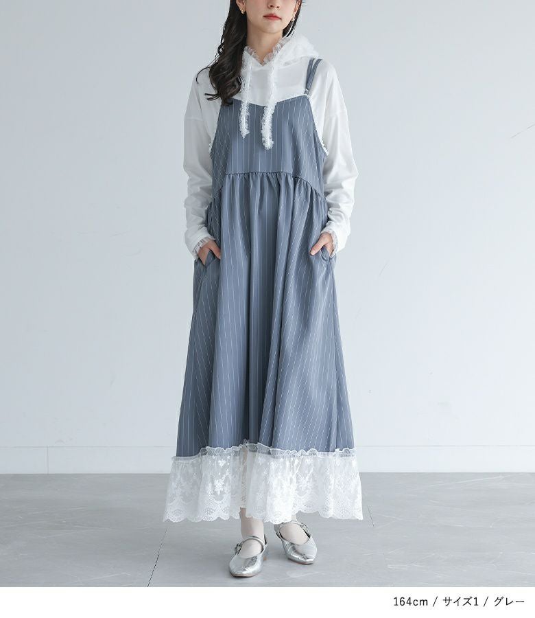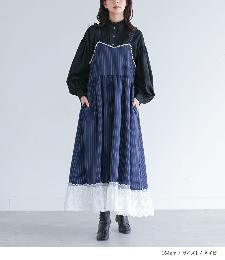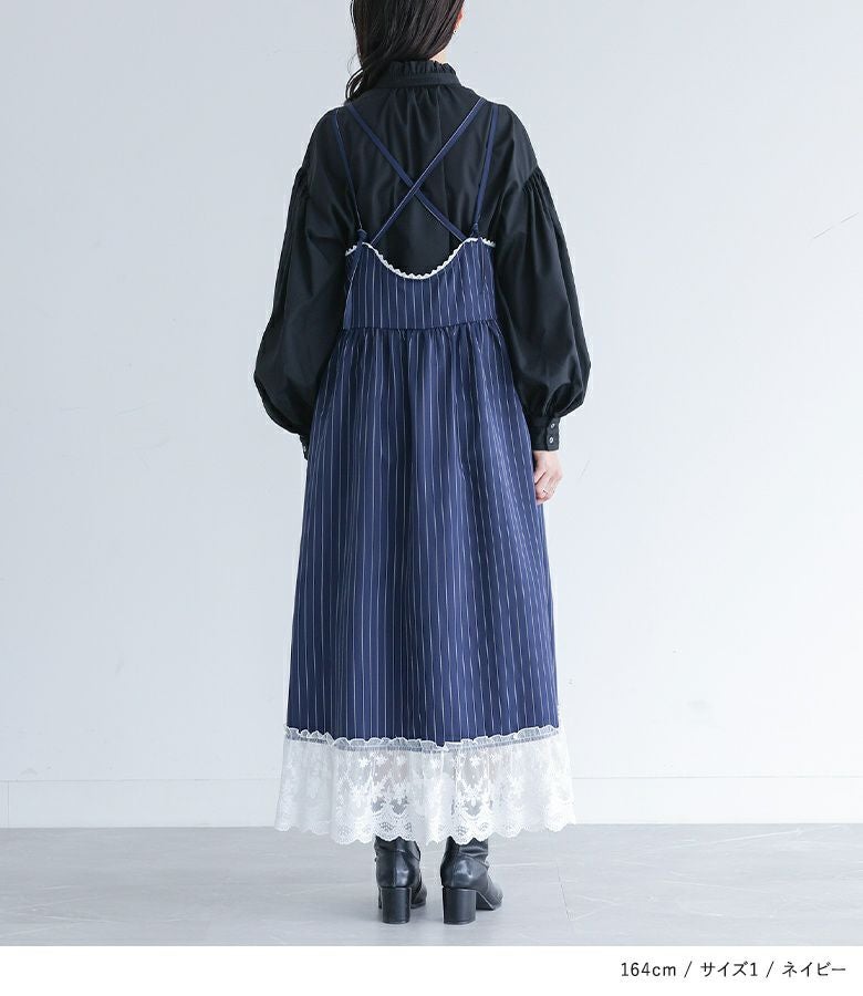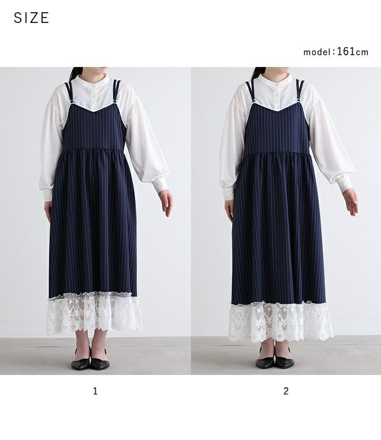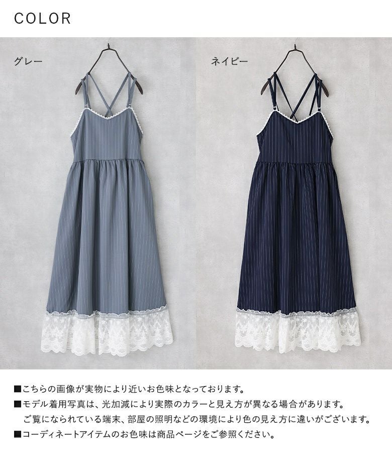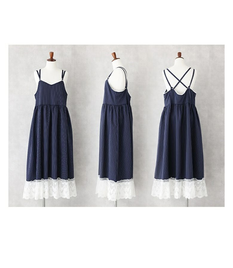 他の画像を見る 選べる2サイズ展開!裾を繊細なレースで切り替えたピンストライプ柄のキャミワンピース。 『somari imaginationピンストライプキャミワンピース』【メール便不可】【20】 ¥ 6,980 税込 (0)