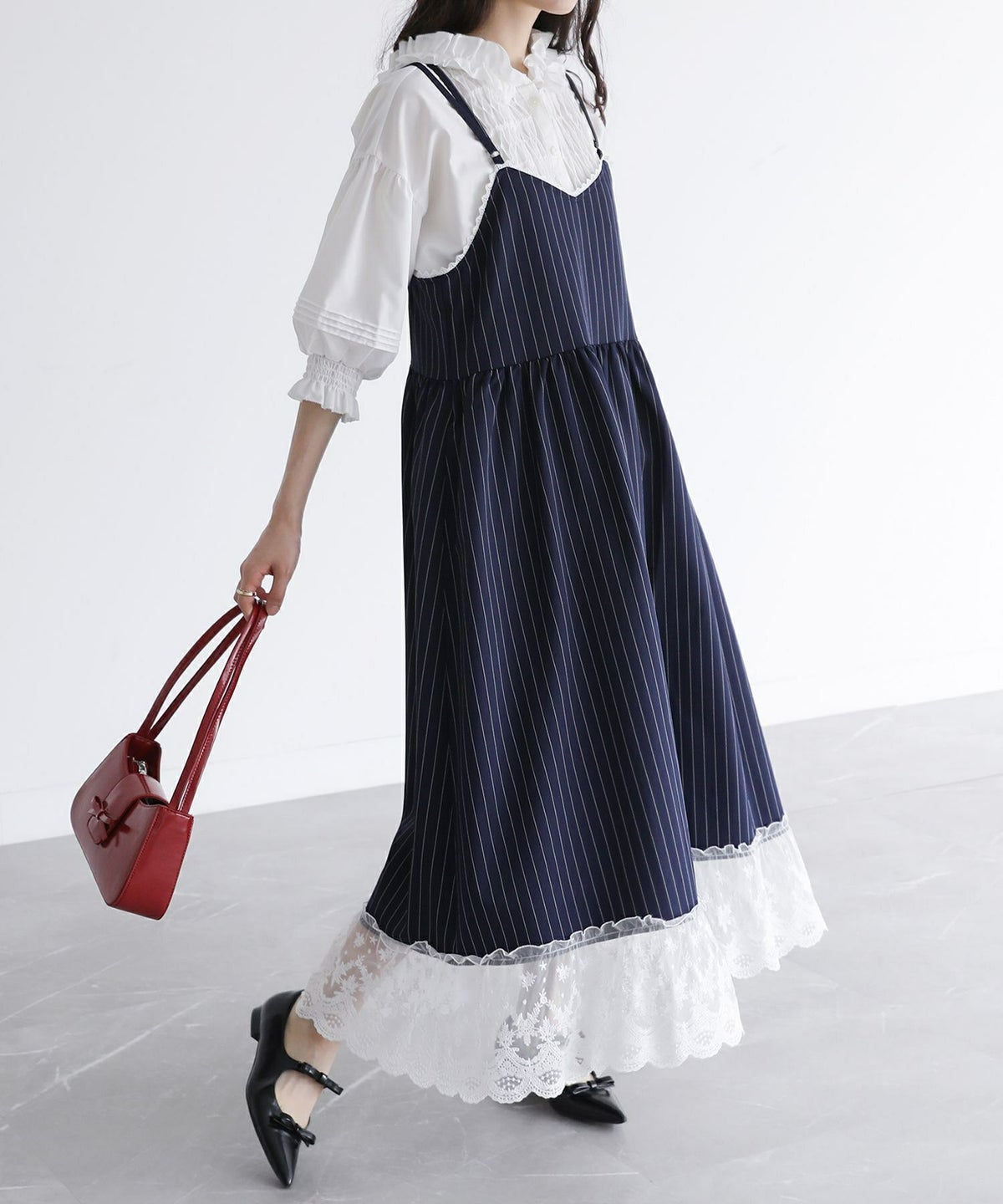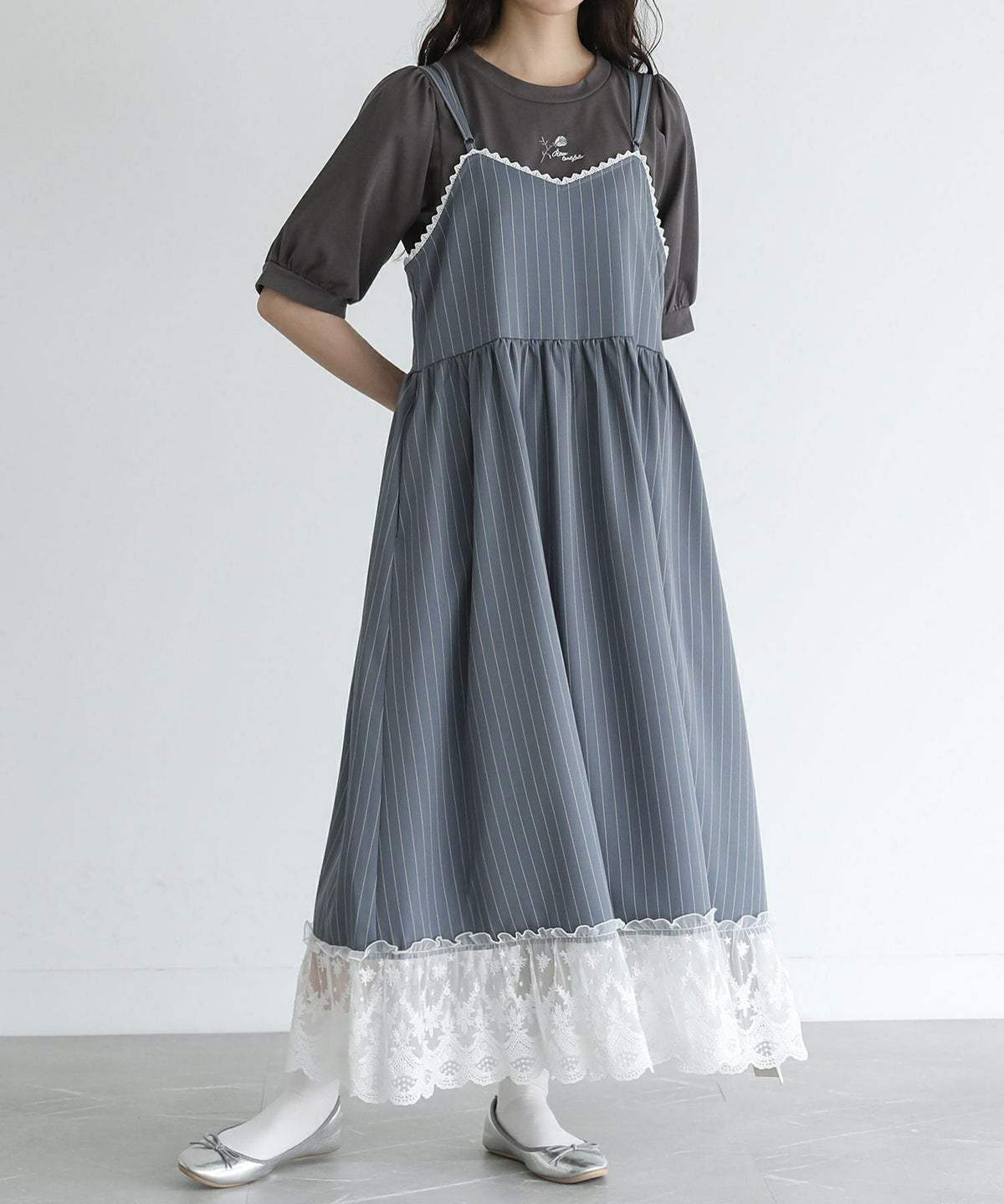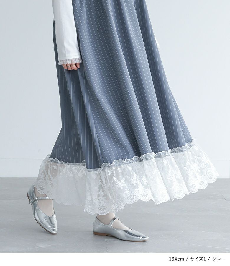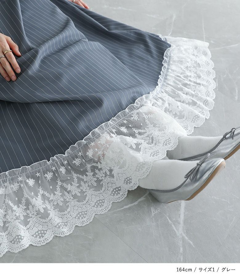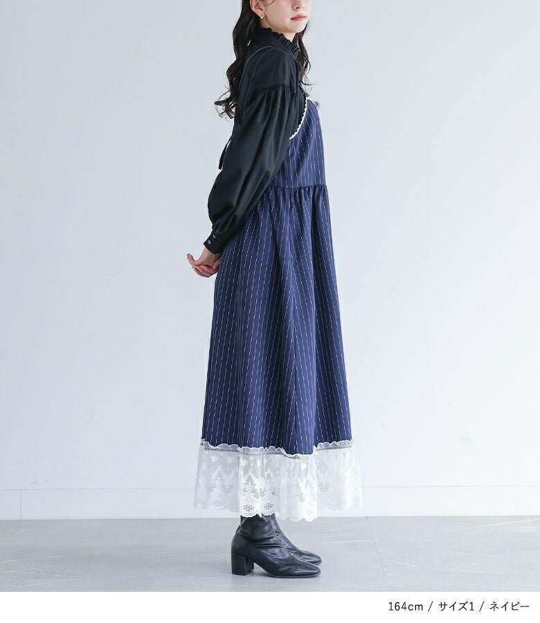 他の画像を見る 選べる2サイズ展開!裾を繊細なレースで切り替えたピンストライプ柄のキャミワンピース。 『somari imaginationピンストライプキャミワンピース』【メール便不可】【20】 ¥ 6,980 税込 (0)