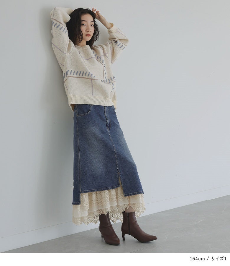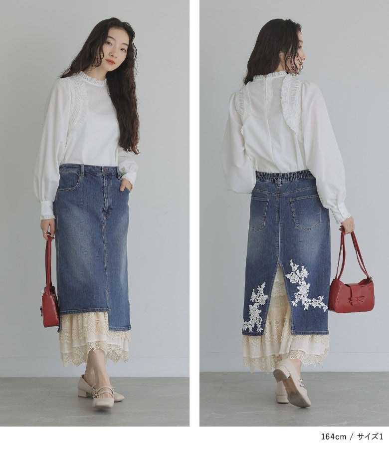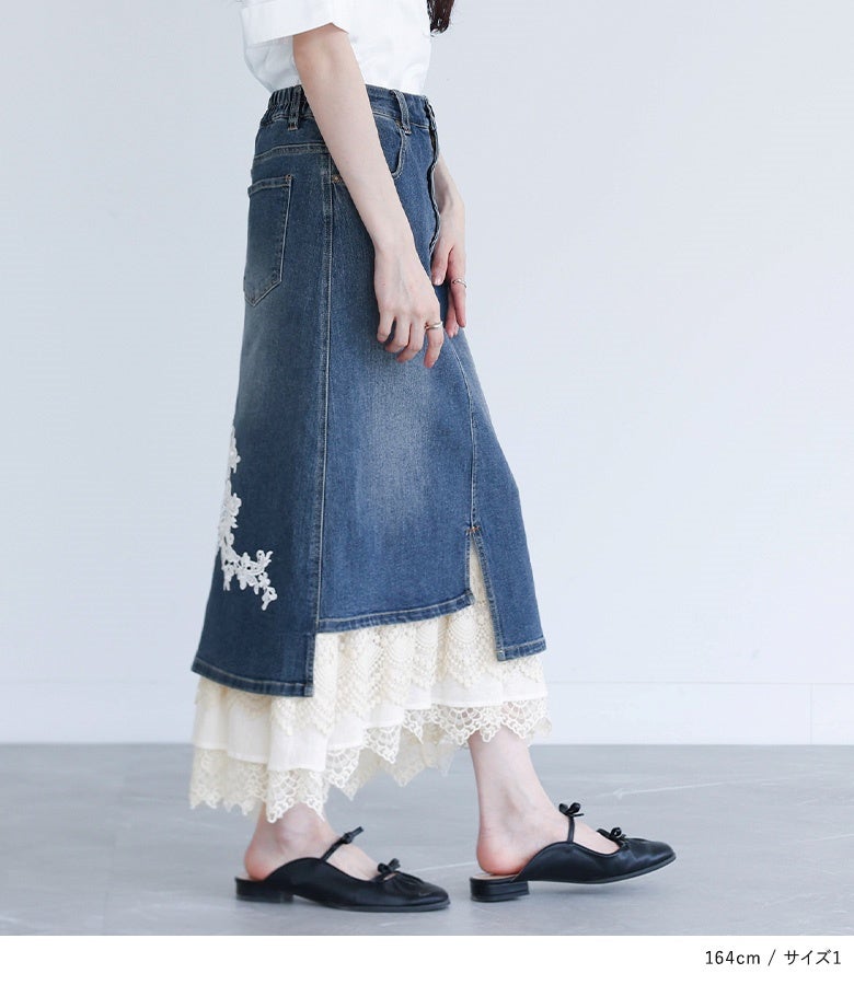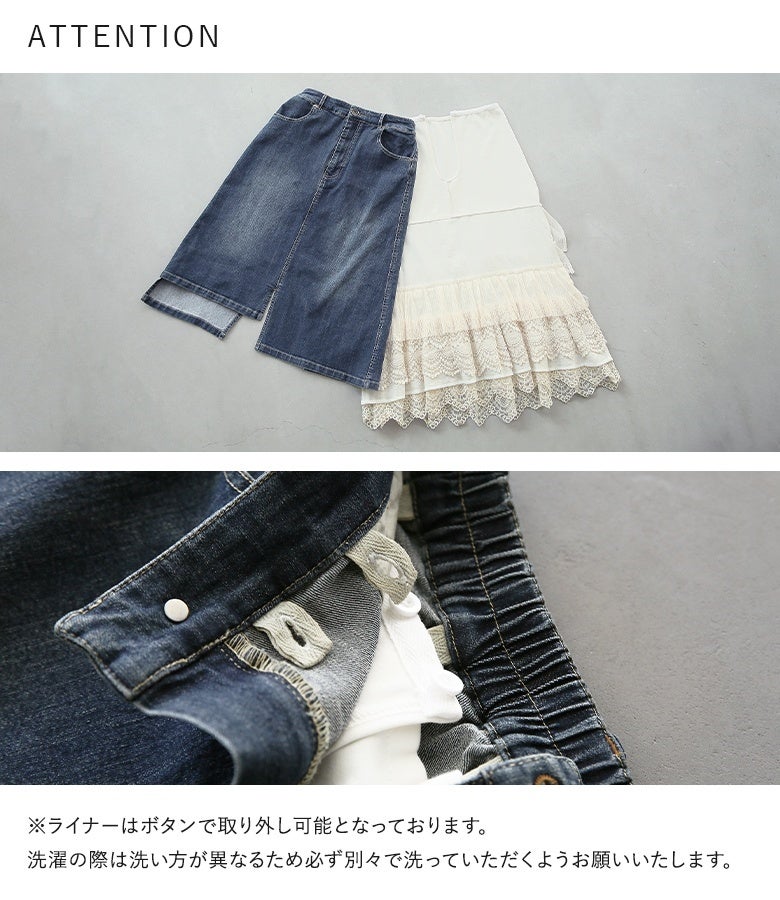 他の画像を見る 選べるM~3Lサイズ展開!目線を独り占めするデニムスカート♪ 【送料無料】『somari imaginationレースライナーアシメデニムスカート』【メール便不可】【40】 ¥ 11,980 税込 4.72 (46)